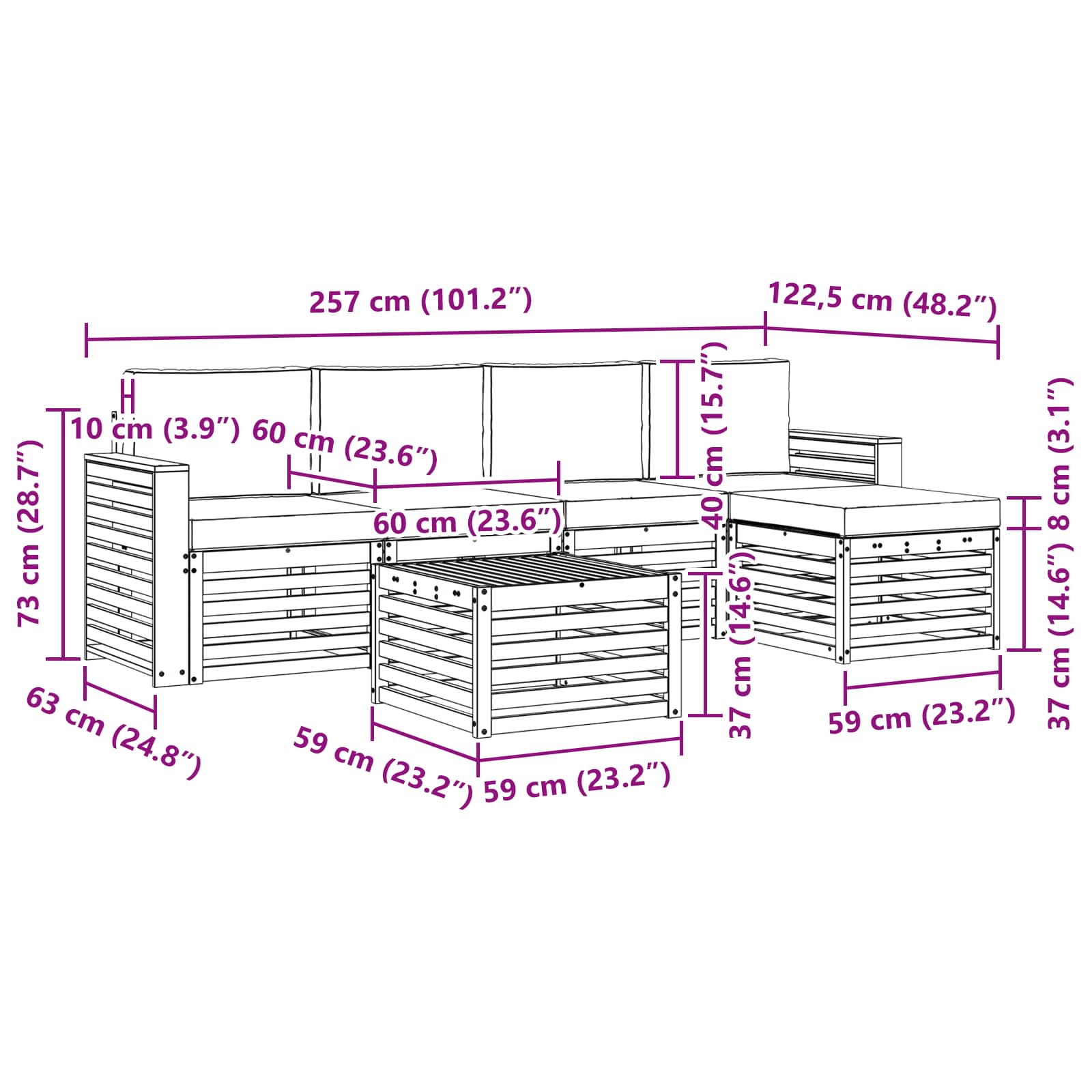 - 5 x Sitzkissen: 60 x 60 x 8 cm (LxBxH)