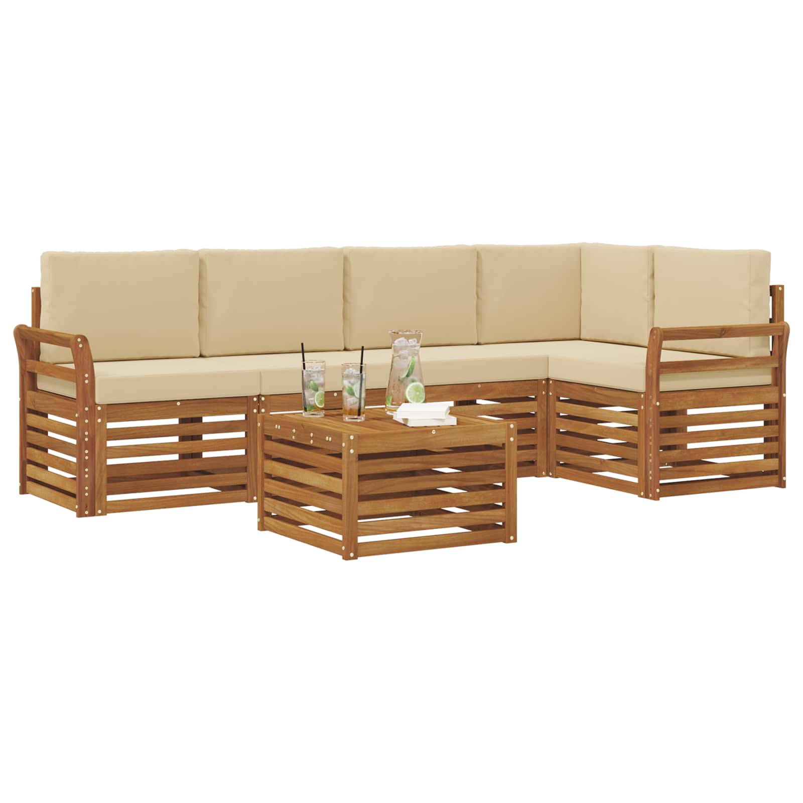 Das Outdoor-Möbelset verbindet Style mit Funktionalität und wird zum echten Blickfang in jedem Garten oder auf jeder Terrasse. Das moderne Design mit klaren Linien bringt Eleganz und sorgt für gemütliche Stunden im Freien. Hergestellt aus massivem Akazienholz bietet es Langlebigkeit und ein schickes Aussehen – perfekt für alle, die praktische und schicke Möbel suchen. Langlebiges massivem Akazienholz: Dieses Outdoor-Möbelset ist aus massivem Akazienholz gemacht und bekannt für seine Robustheit und Widerstandsfähigkeit gegen Witterungsbedingungen. Der stabile Rahmen sorgt für zuverlässige Unterstützung und hält lange, während die warme Holzfarbe jede Garten- oder Terrassengestaltung aufwertet. Wetterfestes Design: Das Set hat eine lackierte Oberfläche, die zusätzlichen Schutz gegen Sonne, leichten Regen und andere Witterungen bietet. Das polierte Finish bewahrt das Aussehen und die Funktionalität, sodass die Möbel lange in deinem Garten, auf der Terrasse oder im Hinterhof schön bleiben. Komponenten & Design: Jedes Stück ist so gestaltet, dass es sowohl stylish als auch funktional ist. Die unterstützenden Merkmale sorgen für zusätzlichen Komfort, und das harmonische Design lässt das Set auf verschiedenen Outdoor-Events gut aussehen. Komfort & Vielseitigkeit: Das modulare Design ermöglicht flexible Konfigurationen, die an verschiedene Räume und Bedürfnisse angepasst werden können. Ideal zum Chillen, für gesellige Treffen oder ruhige Lesestunden – dieses Set passt sich jeder Outdoor-Umgebung an und maximiert den Komfort. Einfache Pflege: Halte deine Möbel in gutem Zustand, indem du die Oberfläche mit einem feuchten Tuch abwischst und aggressive Reinigungsmittel vermeidest. Regelmäßige Pflege erhält das coole Aussehen und verlängert die Lebensdauer deiner Möbel.