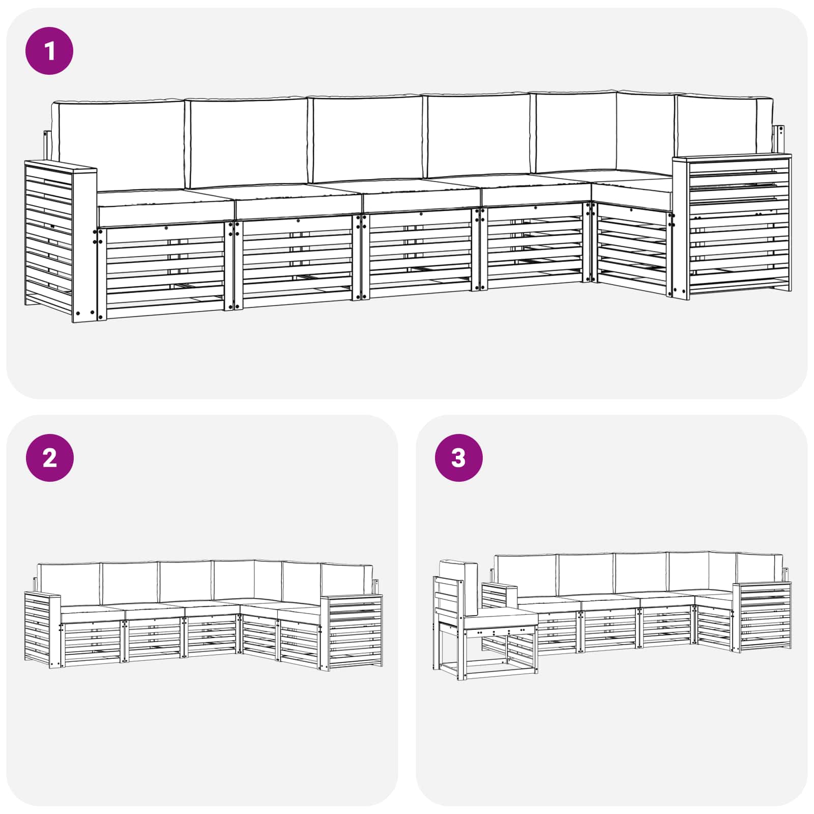 - 6 x Sitzkissen: 60 x 60 x 8 cm (LxBxH)