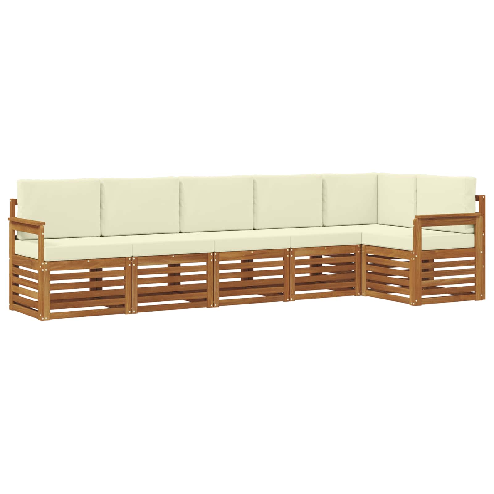 Dieses Möbelset für draußen kombiniert coolen Style mit praktischen Features und setzt ein stylisches Highlight in jedem Garten oder auf jeder Terrasse. Mit ihrem modernen Design, einfachen Linien und minimalen Details sorgt es für Eleganz und perfekte Voraussetzungen, um im Freien zu entspannen oder gesellige Runden zu genießen. Ganz aus massivem Akazienholz gefertigt, bietet das Set Langlebigkeit und sieht über die Zeit immer gut aus - die ideale Wahl für alle, die Design und Funktionalität schätzen. Langlebiges Massivholz Akazie: Das Außenmöbelset ist aus robustem Akazienholz gefertigt, das super haltbar ist und sich gut an die Wetterbedingungen anpasst. Die robuste Bauweise sorgt für Stabilität und Langlebigkeit, während die warme Farbe jede Garten- oder Terrassengestaltung aufpeppt. Wetterbeständiges Design: Die lackierte Oberfläche des Sets bietet zusätzlichen Schutz vor Sonne, leichtem Regen und anderen Witterungen. Die polierte Oberfläche hilft, die Optik und Funktionalität langfristig zu bewahren und sorgt dafür, dass die Möbel in deinem Garten, auf der Terrasse oder im Hinterhof immer gut aussehen. Komponenten und Design: Jedes Teil, von den Armlehnen bis zu den Rückenlehnen, wurde sowohl stilvoll als auch funktional gestaltet. Die unterstützenden Elemente tragen zusätzlich zum Komfort bei, während das einheitliche Design ein harmonisches Gesamtbild für verschiedene Outdoor-Anlässe schafft. Komfort und Vielseitigkeit: Das modulare Design ermöglicht flexible Anordnungen, die für verschiedene Räume und Bedürfnisse passen. Egal, ob du entspannst, Gäste einlädst oder ruhig lesen möchtest - dieses Set fügt sich mühelos in jede Außenumgebung ein und sorgt für maximalen Komfort und Nutzung. Einfache Pflege: So bleiben die Möbel schön: einfach mit einem feuchten Tuch abwischen und aggressive Reiniger vermeiden. Regelmäßige Pflege hält die Möbel top und verlängert ihre Lebensdauer.