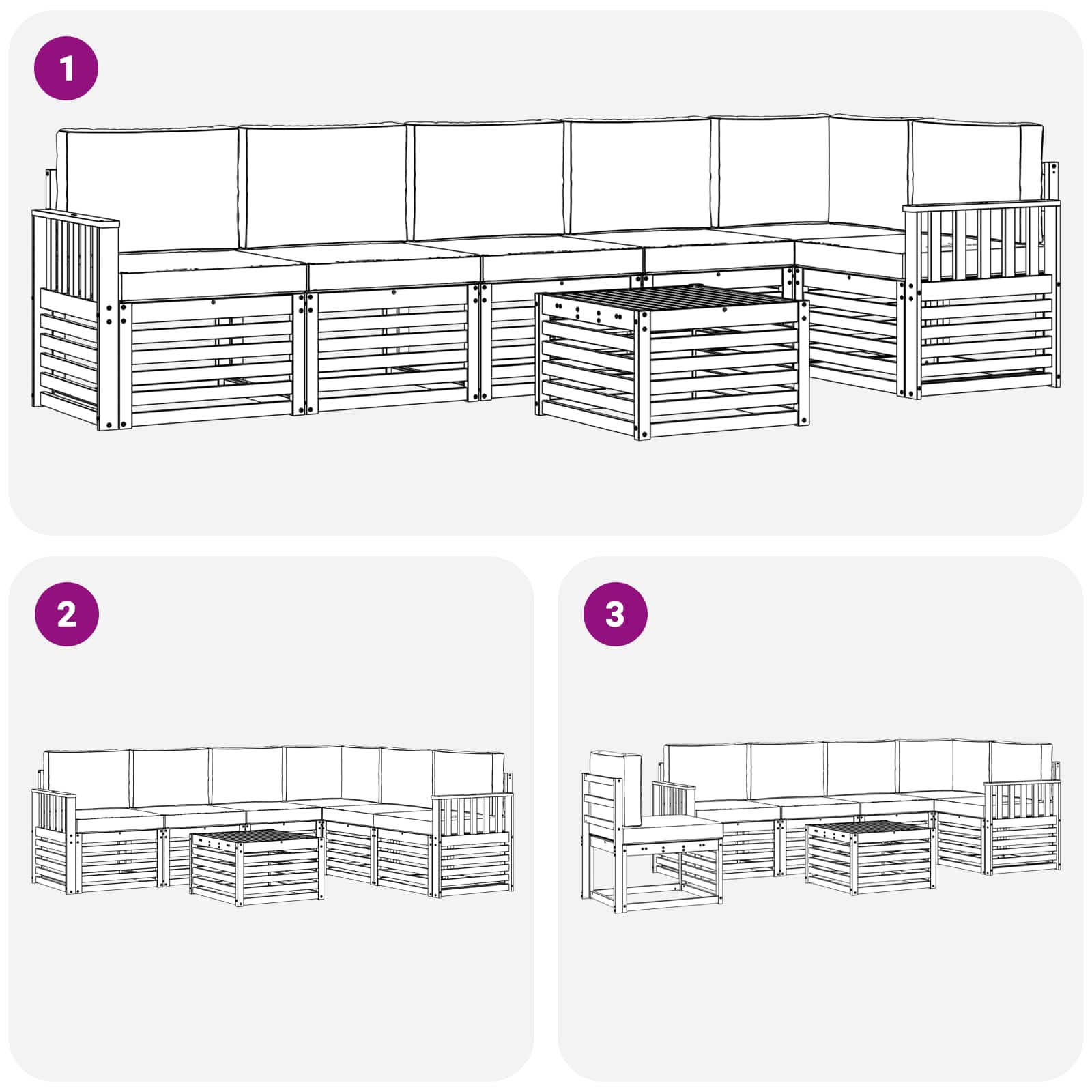 - 6 x Sitzkissen: 60 x 60 x 8 cm (LxBxH)