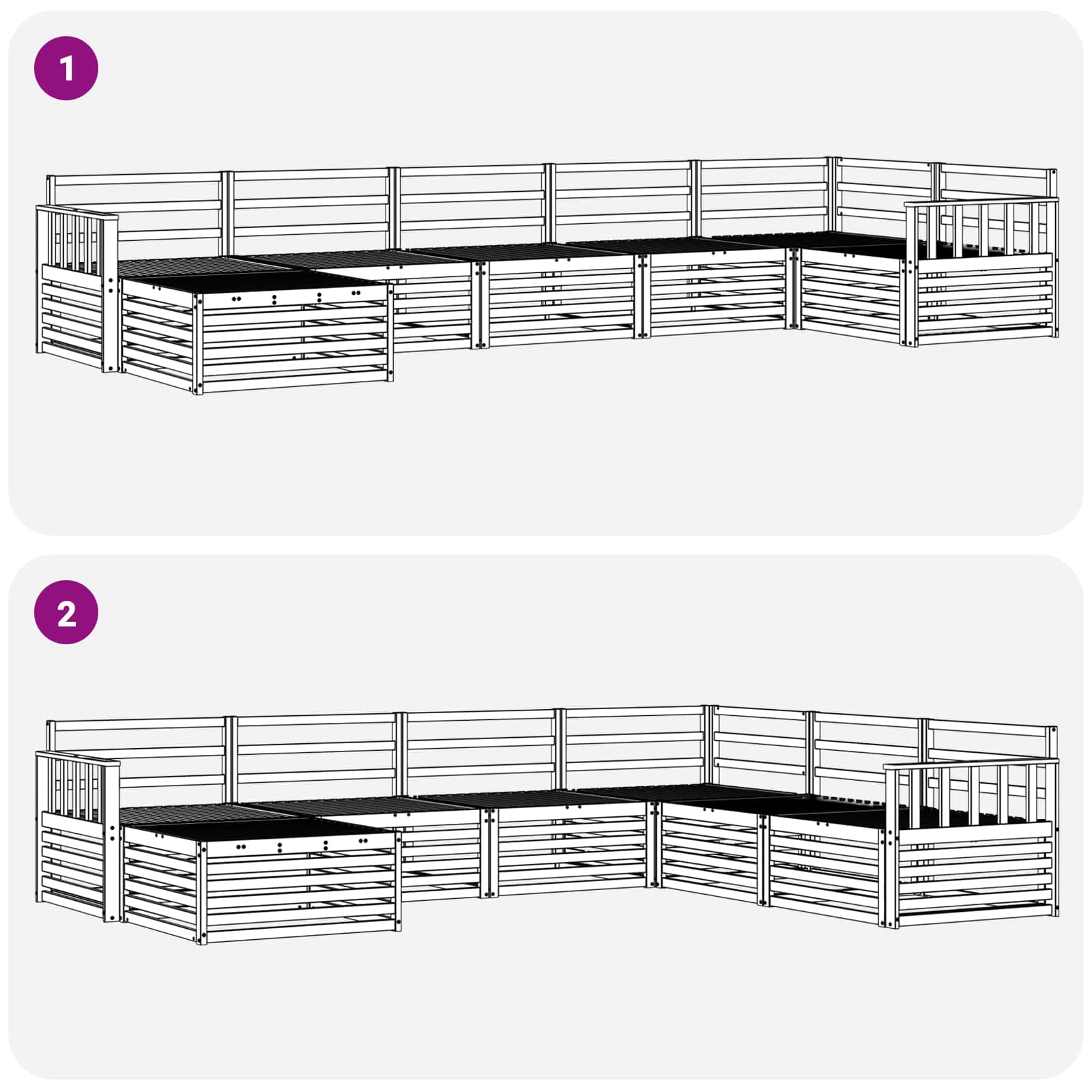 Das Gartenmöbel-Set verbindet Stil und Funktionalität und ist ein echter Hingucker für jeden Garten oder jede Terrasse. Mit einem modernen Design, klaren Linien und minimalen Details strahlt es Eleganz aus und lädt zum Entspannen oder zu geselligen Treffen im Freien ein. Komplett aus Massivholz Akazie sorgt es für Langlebigkeit und sieht einfach toll aus – die perfekte Wahl für alle, die praktische Möbel mit Klasse im Außenbereich suchen. Langlebiges Massivholz Akazie: Dieses Möbelset ist aus solidem Akazienholz und hält äußeren Einflüssen super stand. Die robuste Bauweise sorgt für sicheren Halt und langanhaltende Stabilität, während der warme Naturton jeden Garten oder Terrasse aufwertet. Wetterfeste Bauweise: Die lackierte Oberfläche bietet extra Schutz gegen Sonne, leichten Regen und andere Witterungsverhältnisse. So bleibt das Mobiliar schön und funktionell und sorgt für Langlebigkeit in deinem Garten, auf deiner Terrasse oder im Hinterhof. Design & Komponenten: Jedes Stück, von den Armlehnen bis hin zu den Rückenlehnen, ist stilvoll und funktionell gestaltet. Unterstützende Merkmale bieten Komfort und das harmonische Design sorgt für einen ansprechenden Look im Freien. Komfort & Flexibilität: Dank des modularen Designs ist es super flexibel und passt sich verschiedenen Räumen und Bedürfnissen an. Perfekt für Entspannung, gesellige Runden oder ruhige Leseplätze – dieses Set macht überall draussen eine gute Figur. Einfach zu pflegen: Halte die Möbel flink in Schuss, indem du die Oberfläche mit einem feuchten Tuch abwischst und aggressive Reiniger vermeidest. Regelmäßige Pflege hilft, das Aussehen zu bewahren und erhöht die Lebensdauer der Möbel.