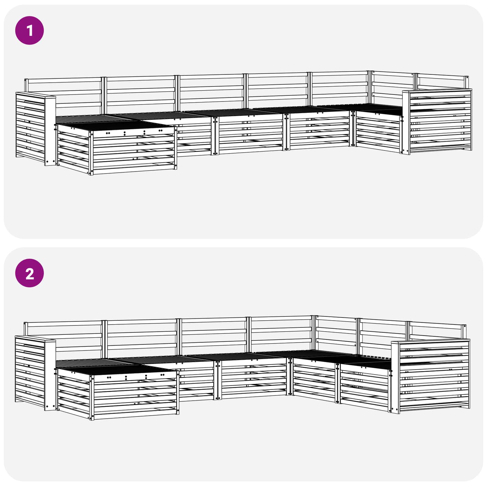 Das Gartenmöbel-Set verbindet Stil und Funktionalität und ist ein echter Hingucker für jeden Garten oder jede Terrasse. Mit einem modernen Design, klaren Linien und minimalen Details strahlt es Eleganz aus und lädt zum Entspannen oder zu geselligen Treffen im Freien ein. Komplett aus Massivholz Akazie sorgt es für Langlebigkeit und sieht einfach toll aus – die perfekte Wahl für alle, die praktische Möbel mit Klasse im Außenbereich suchen. Langlebiges Massivholz Akazie: Dieses Möbelset ist aus solidem Akazienholz und hält äußeren Einflüssen super stand. Die robuste Bauweise sorgt für sicheren Halt und langanhaltende Stabilität, während der warme Naturton jeden Garten oder Terrasse aufwertet. Wetterfeste Bauweise: Die lackierte Oberfläche bietet extra Schutz gegen Sonne, leichten Regen und andere Witterungsverhältnisse. So bleibt das Mobiliar schön und funktionell und sorgt für Langlebigkeit in deinem Garten, auf deiner Terrasse oder im Hinterhof. Design & Komponenten: Jedes Stück, von den Armlehnen bis hin zu den Rückenlehnen, ist stilvoll und funktionell gestaltet. Unterstützende Merkmale bieten Komfort und das harmonische Design sorgt für einen ansprechenden Look im Freien. Komfort & Flexibilität: Dank des modularen Designs ist es super flexibel und passt sich verschiedenen Räumen und Bedürfnissen an. Perfekt für Entspannung, gesellige Runden oder ruhige Leseplätze – dieses Set macht überall draussen eine gute Figur. Einfach zu pflegen: Halte die Möbel flink in Schuss, indem du die Oberfläche mit einem feuchten Tuch abwischst und aggressive Reiniger vermeidest. Regelmäßige Pflege hilft, das Aussehen zu bewahren und erhöht die Lebensdauer der Möbel.