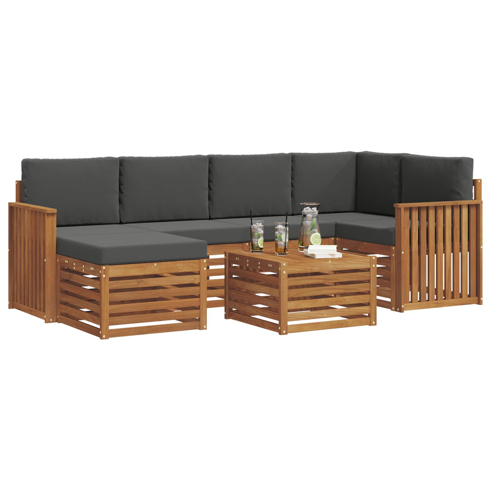 Das Outdoor-Möbelset vereint Stil und Funktionalität und wird zum Blickfang in jedem Garten oder auf jeder Terrasse. Sein modernes Design mit klaren Linien und wenig Schnickschnack strahlt Eleganz aus und lädt zu entspannenden Stunden im Freien ein. Gefertigt aus massivem Akazienholz, sorgt das Set für lange Haltbarkeit und bleibt auch nach längerem Gebrauch attraktiv, die optimale Wahl für alle, die praktische und schicke Gartenmöbel suchen. Langlebiges Massivholz Akazie: Hergestellt aus robustem Akazienholz, widersteht dieses Outdoor-Möbelset den Witterungsbedingungen. Die starke Konstruktion bietet Haltbarkeit und Stabilität, während die warme Holzfarbe jedes Außenbereich aufwertet. Wetterfeste Oberfläche: Das Set kommt mit einer lackierten Oberfläche, die zusätzlichen Schutz gegen Sonne und leichten Regen bietet. Die glatte Oberfläche bleibt so schön und funktioniert dauerhaft im Garten, auf der Terrasse oder im Hof. Design und Komponenten: Jede Komponente, von den Armlehnen bis zu den Rückenlehnen, wurde mit Blick auf Stil und Funktion gestaltet. Zusätzliche Merkmale sorgen für mehr Komfort, während das durchgängige Design ein harmonisches Gesamtbild im Freien bietet. Komfort und Flexibilität: Dank des modularen Designs kannst du die Anordnung flexibel gestalten, ganz nach deinen Bedürfnissen. Ob zum Entspannen, Feiern oder für ruhige Lesestunden, dieses Set passt sich jeder Außenumgebung an und sorgt für hohen Komfort. Einfache Pflege und Wartung: Halte die Möbel einfach im Top-Zustand, indem du die Oberfläche mit einem feuchten Tuch abwischst und aggressive Reinigungsmittel vermeidest. Regelmäßige Pflege erhält das Aussehen und verlängert die Lebensdauer der Möbel.
