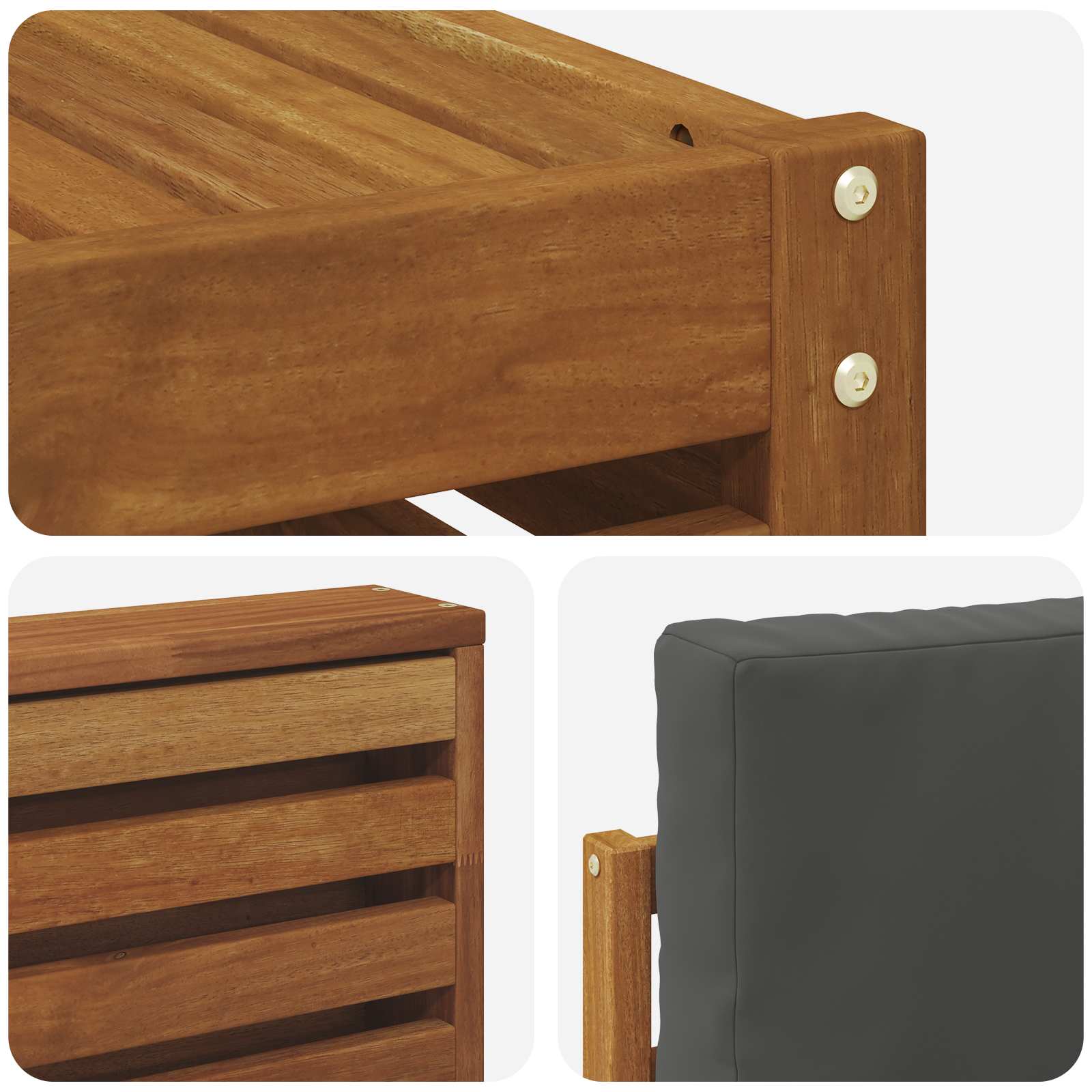 Das Outdoor-Möbelset vereint Stil und Funktionalität und wird zum Blickfang in jedem Garten oder auf jeder Terrasse. Sein modernes Design mit klaren Linien und wenig Schnickschnack strahlt Eleganz aus und lädt zu entspannenden Stunden im Freien ein. Gefertigt aus massivem Akazienholz, sorgt das Set für lange Haltbarkeit und bleibt auch nach längerem Gebrauch attraktiv, die optimale Wahl für alle, die praktische und schicke Gartenmöbel suchen. Langlebiges Massivholz Akazie: Hergestellt aus robustem Akazienholz, widersteht dieses Outdoor-Möbelset den Witterungsbedingungen. Die starke Konstruktion bietet Haltbarkeit und Stabilität, während die warme Holzfarbe jedes Außenbereich aufwertet. Wetterfeste Oberfläche: Das Set kommt mit einer lackierten Oberfläche, die zusätzlichen Schutz gegen Sonne und leichten Regen bietet. Die glatte Oberfläche bleibt so schön und funktioniert dauerhaft im Garten, auf der Terrasse oder im Hof. Design und Komponenten: Jede Komponente, von den Armlehnen bis zu den Rückenlehnen, wurde mit Blick auf Stil und Funktion gestaltet. Zusätzliche Merkmale sorgen für mehr Komfort, während das durchgängige Design ein harmonisches Gesamtbild im Freien bietet. Komfort und Flexibilität: Dank des modularen Designs kannst du die Anordnung flexibel gestalten, ganz nach deinen Bedürfnissen. Ob zum Entspannen, Feiern oder für ruhige Lesestunden, dieses Set passt sich jeder Außenumgebung an und sorgt für hohen Komfort. Einfache Pflege und Wartung: Halte die Möbel einfach im Top-Zustand, indem du die Oberfläche mit einem feuchten Tuch abwischst und aggressive Reinigungsmittel vermeidest. Regelmäßige Pflege erhält das Aussehen und verlängert die Lebensdauer der Möbel.