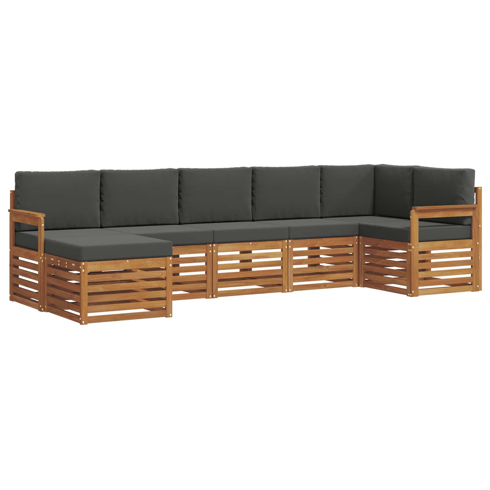Das Gartenmöbelset vereint Stil mit praktischer Funktionalität und wird zum Hingucker in jedem Garten oder auf jeder Terrasse. Das moderne Design mit klaren Linien und minimalistischen Details verleiht deinem Außenbereich Eleganz und fördert Entspannung sowie gesellige Zusammenkünfte. Mit dem soliden Akazienholz bist du auf der sicheren Seite, denn das Set ist langlebig und sieht auch nach längerer Nutzung toll aus. Langlebiges Massivholz Akazie: Dieses Outdoor-Möbelset aus massivem Akazienholz ist bekannt für seine Widerstandsfähigkeit und Haltbarkeit. Die robuste Bauweise garantiert dir zuverlässige Unterstützung und sorgt dafür, dass es deine Garten- oder Terrassenumgebung aufwertet. Wetterbeständiges Design: Die lackierte Oberfläche bietet extra Schutz gegen Sonne und leichten Regen. Der polierte Finish lässt das Set länger schön aussehen und sorgt dafür, dass du lange Freude daran hast. Komponenten & Design: Jedes Teil, von den Armlehnen bis zu den Rückenlehnen, sieht stylisch aus und ist funktionell. Stützende Details sorgen für zusätzlichen Komfort, während das durchgängige Design ein harmonisches Bild für jede Outdoor-Aktivität schafft. Komfort & Vielseitigkeit: Das modulare Design lässt sich flexibel anpassen, sodass es für jede Situation passt: ob Entspannung, gesellige Runden oder ruhige Lesemomente. Dieses Set fügt sich überall nahtlos ein und sorgt für maximalen Komfort. Einfache Pflege & Wartung: Einfach regelmäßig mit einem feuchten Tuch abwischen und auf aggressive Reinigungsmittel verzichten. So bleibt das Set schön und trägt zurLanglebigkeit bei.