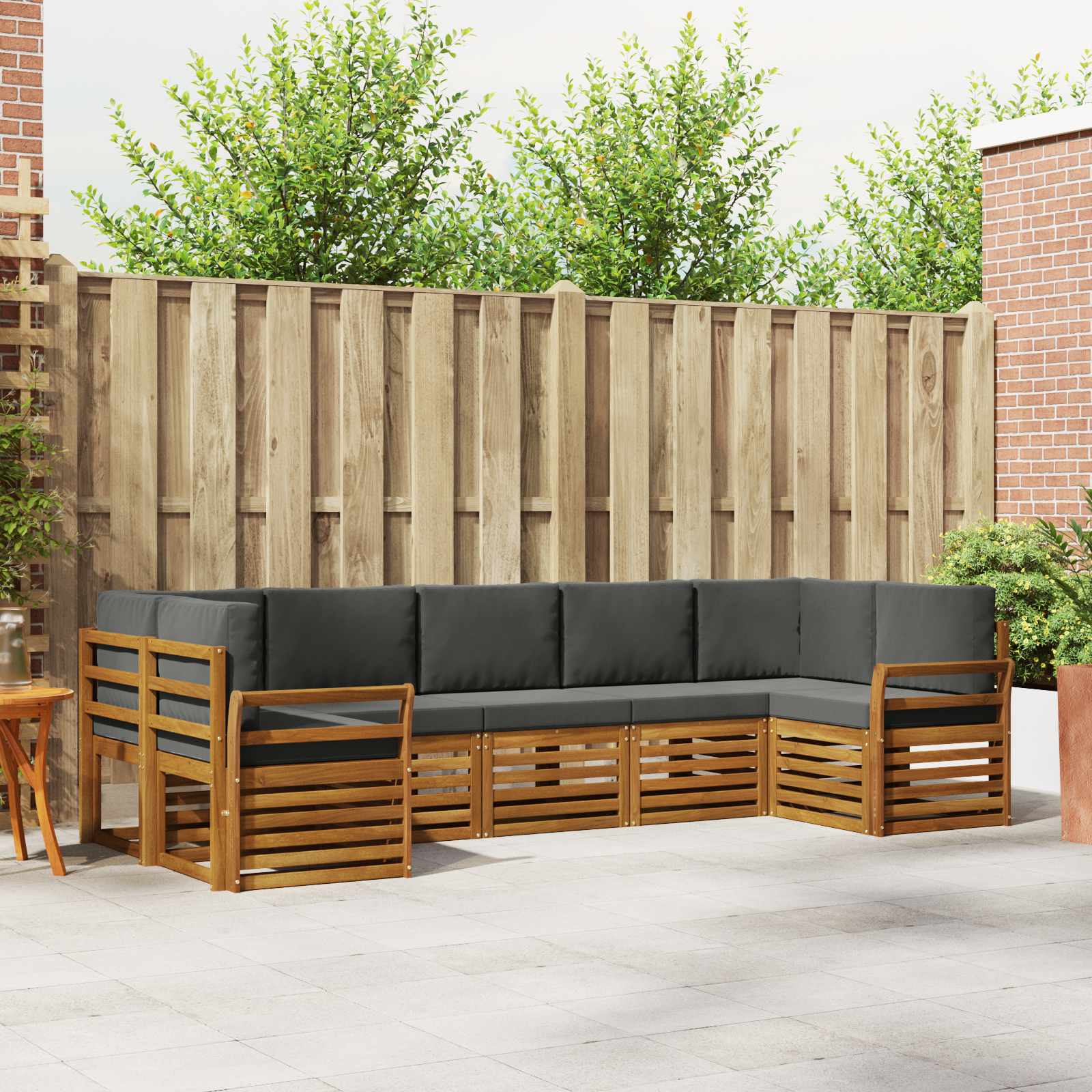 Dieses Outdoor-Sektionalsofa-Set überzeugt mit einem stylischen und funktionalen Design, das perfekt in deinen Garten, auf die Terrasse oder an den Pool passt. Aus solidem Akazienholz gefertigt, bringt es natürlichen Charme in jeden Außenraum. Es ist modular aufgebaut, sodass du es für jeden Anlass anpassen kannst. Der Komfort ist garantiert – perfekt für entspannte Nachmittage oder gesellige Abende. Hochwertige Materialien Dieses Garten-Sofa-Set aus solidem Akazienholz bringt Eleganz in jeden Außenbereich. Akazienholz ist stabil, witterungsbeständig und bleibt über die Jahreszeiten hinweg in top Zustand. Flexible modulare Bauweise Das modulare Design des Sets erlaubt es dir, die Möbel ganz nach deinen Vorlieben anzuordnen. Egal, ob du eine coole Ecklösung oder einen großzügigen Sitzbereich willst, es passt immer perfekt! Funktionale Komponenten Die Armlehnen sorgen für zusätzlichen Komfort und entspannen richtig gut. Das schlichte Latten-Design ergänzt die Holzstruktur und sieht super aus. Moderne Ästhetik Die klaren Linien und die minimalistische Gestaltung spiegeln modernes Design wider. Es ist die perfekte Leinwand für deinen eigenen Style und harmoniert gut mit vorhandenen Gartenmöbeln. Niedriger Pflegeaufwand Pflegeleichten ist hier kein Problem. Mit einem feuchten Tuch gewischst und es sieht aus wie neu. Akazienholz widersteht Flecken und Schmutz, bleibt also ein toller Bestandteil deines Außenbereichs.