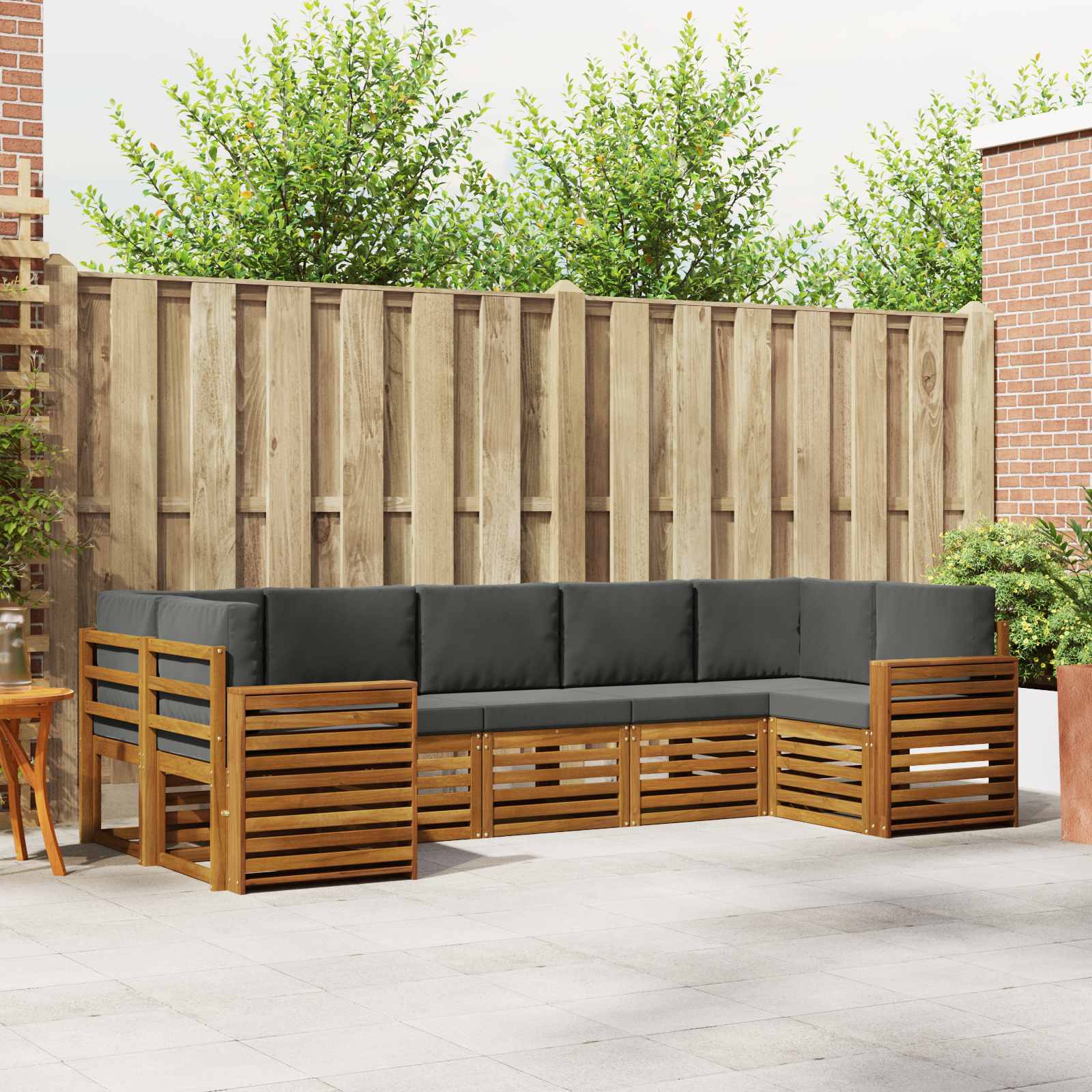 Dieses Outdoor-Sektionalsofa-Set überzeugt mit einem stylischen und funktionalen Design, das perfekt in deinen Garten, auf die Terrasse oder an den Pool passt. Aus solidem Akazienholz gefertigt, bringt es natürlichen Charme in jeden Außenraum. Es ist modular aufgebaut, sodass du es für jeden Anlass anpassen kannst. Der Komfort ist garantiert – perfekt für entspannte Nachmittage oder gesellige Abende. Hochwertige Materialien Dieses Garten-Sofa-Set aus solidem Akazienholz bringt Eleganz in jeden Außenbereich. Akazienholz ist stabil, witterungsbeständig und bleibt über die Jahreszeiten hinweg in top Zustand. Flexible modulare Bauweise Das modulare Design des Sets erlaubt es dir, die Möbel ganz nach deinen Vorlieben anzuordnen. Egal, ob du eine coole Ecklösung oder einen großzügigen Sitzbereich willst, es passt immer perfekt! Funktionale Komponenten Die Armlehnen sorgen für zusätzlichen Komfort und entspannen richtig gut. Das schlichte Latten-Design ergänzt die Holzstruktur und sieht super aus. Moderne Ästhetik Die klaren Linien und die minimalistische Gestaltung spiegeln modernes Design wider. Es ist die perfekte Leinwand für deinen eigenen Style und harmoniert gut mit vorhandenen Gartenmöbeln. Niedriger Pflegeaufwand Pflegeleichten ist hier kein Problem. Mit einem feuchten Tuch gewischst und es sieht aus wie neu. Akazienholz widersteht Flecken und Schmutz, bleibt also ein toller Bestandteil deines Außenbereichs.