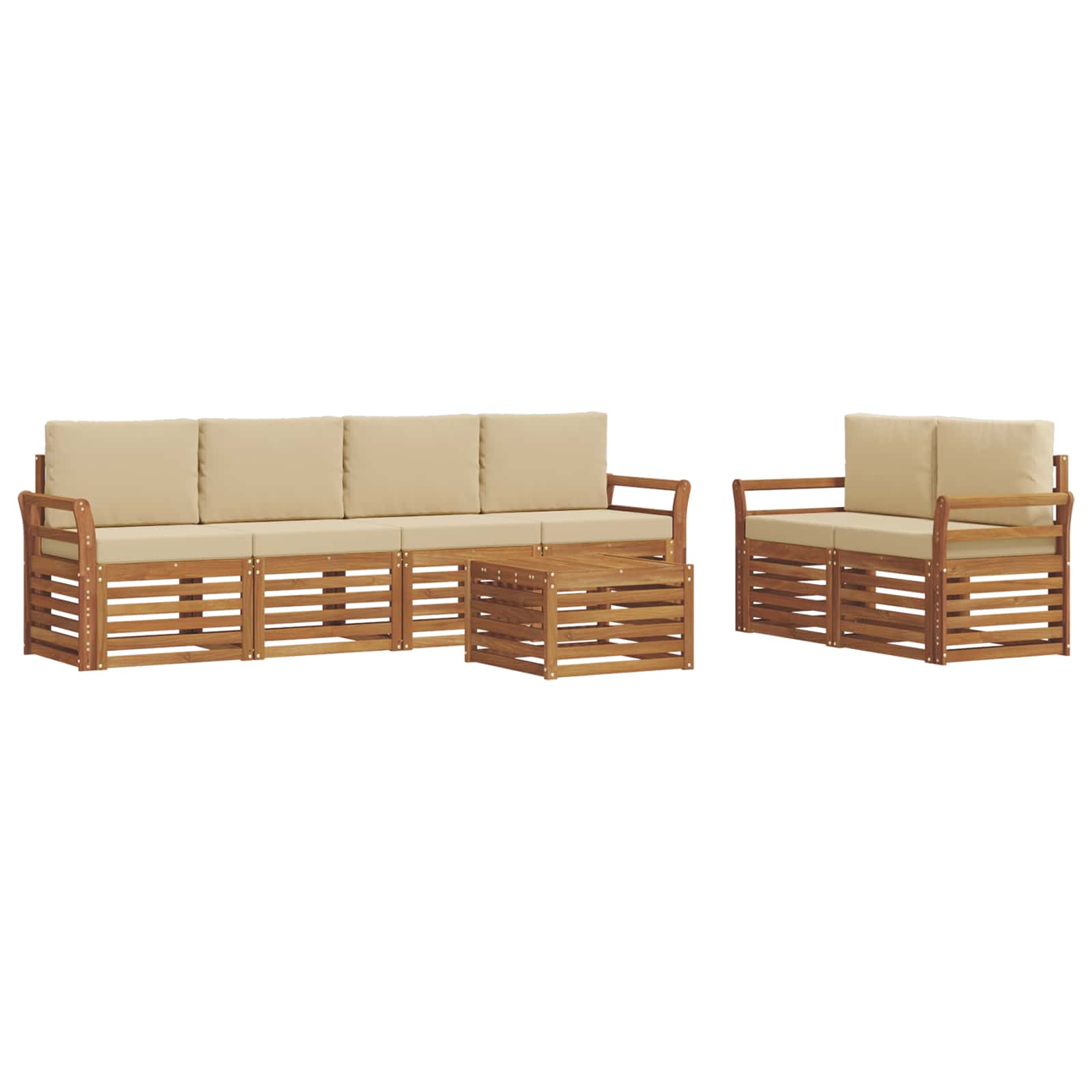 Das Outdoor-Möbelset kombiniert Stil mit Funktion und wird zum echten Hingucker in jedem Garten oder auf deiner Terrasse. Sein modernes Design überzeugt durch klare Linien und minimalistische Details, die Eleganz verleihen und gleichzeitig für entspannte Atmosphäre sorgen. Hergestellt aus massivem Akazienholz, bietet das Set eine lange Lebensdauer und bleibt auch optisch immer ansprechend – perfekt für alle, die praktisches und stylisches Outdoor-Mobiliar suchen. Langlebiges Massivholz Akazie: Dieses Möbelset aus massivem Akazienholz überzeugt durch Haltbarkeit und Widerstandskraft gegen Wetterbedingungen. Der robuste Rahmen sorgt für zuverlässigen Halt und langanhaltende Stabilität, während der warme Farbton jede Garten- oder Terrassengestaltung aufwertet. Wetterbeständiges Design: Mit einer lackierten Oberfläche trotzt dieses Set Sonne, leichtem Regen und anderen äußeren Einflüssen. Der polierte Glanz sieht nicht nur gut aus, sondern sorgt auch für langanhaltende Qualität in deinem Garten oder auf deiner Terrasse. Komponenten & Design: Jedes Teil, von den Armlehnen bis zu den Rückenlehnen, ist stylisch und funktional. Die unterstützenden Features sorgen für zusätzlichen Komfort, während das harmonische Design für alle Outdoor-Anlässe ansprechend bleibt. Komfort & Vielseitigkeit: Das modulare Design ermöglicht flexible Anordnungen, die sich an verschiedene Räume und Bedürfnisse anpassen. Perfekt zum Entspannen, für gesellige Treffen oder ruhige Lesestunden fügt sich dieses Set ganz einfach in jede Outdoor-Umgebung ein und sorgt für maximalen Komfort. Einfache Pflege & Wartung: Um die Möbel im Top-Zustand zu halten, einfach mit einem feuchten Tuch abwischen und auf aggressive Reiniger verzichten. Regelmäßige Pflege hilft, das Aussehen zu erhalten und die Lebensdauer der Möbel zu verlängern.