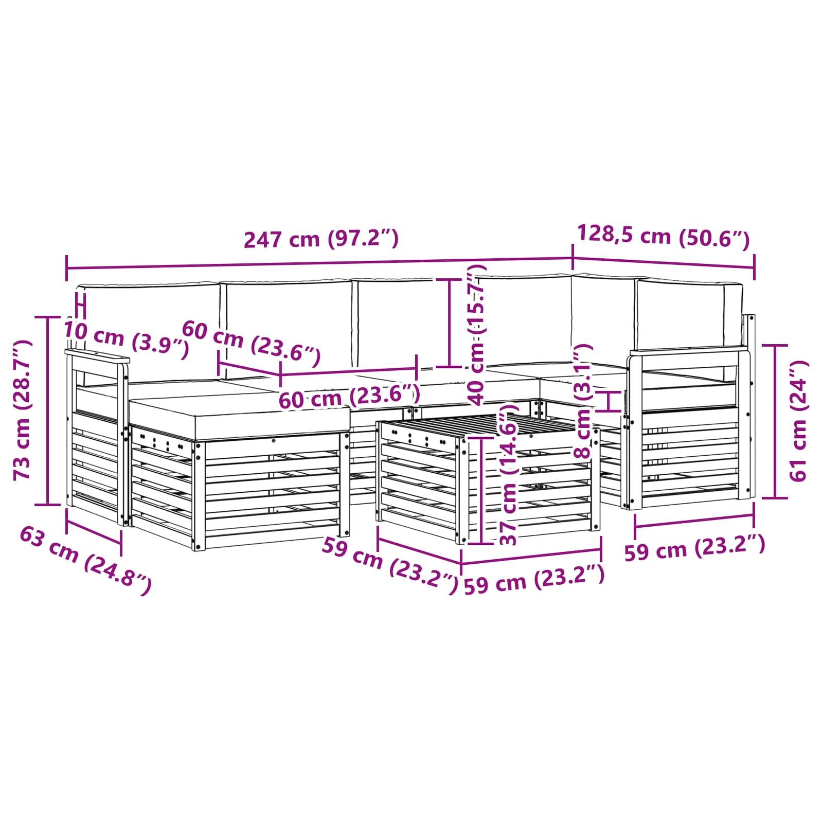 - 6 x Sitzkissen: 60 x 60 x 8 cm (LxBxH)