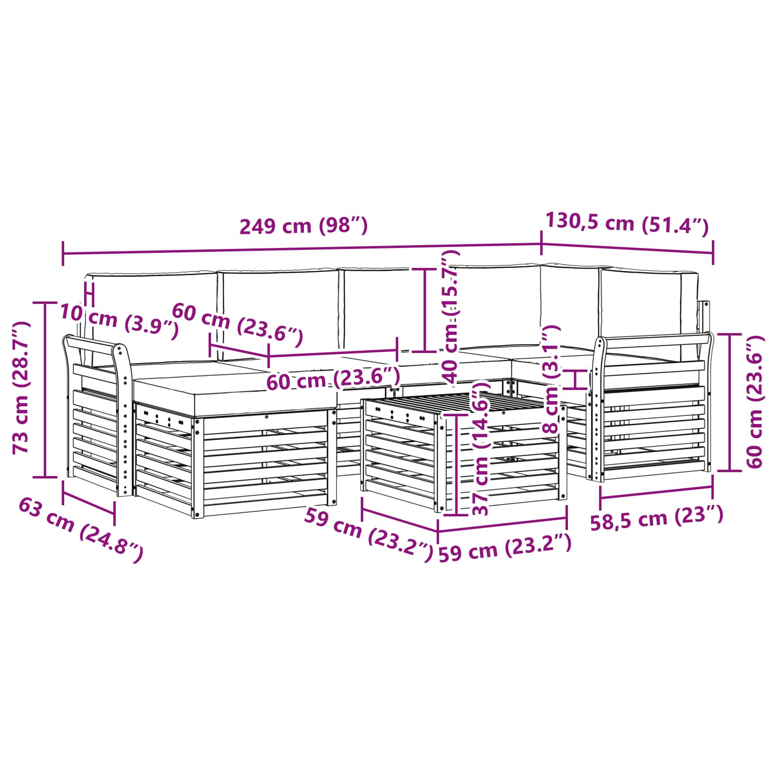 - 6 x Sitzkissen: 60 x 60 x 8 cm (LxBxH)