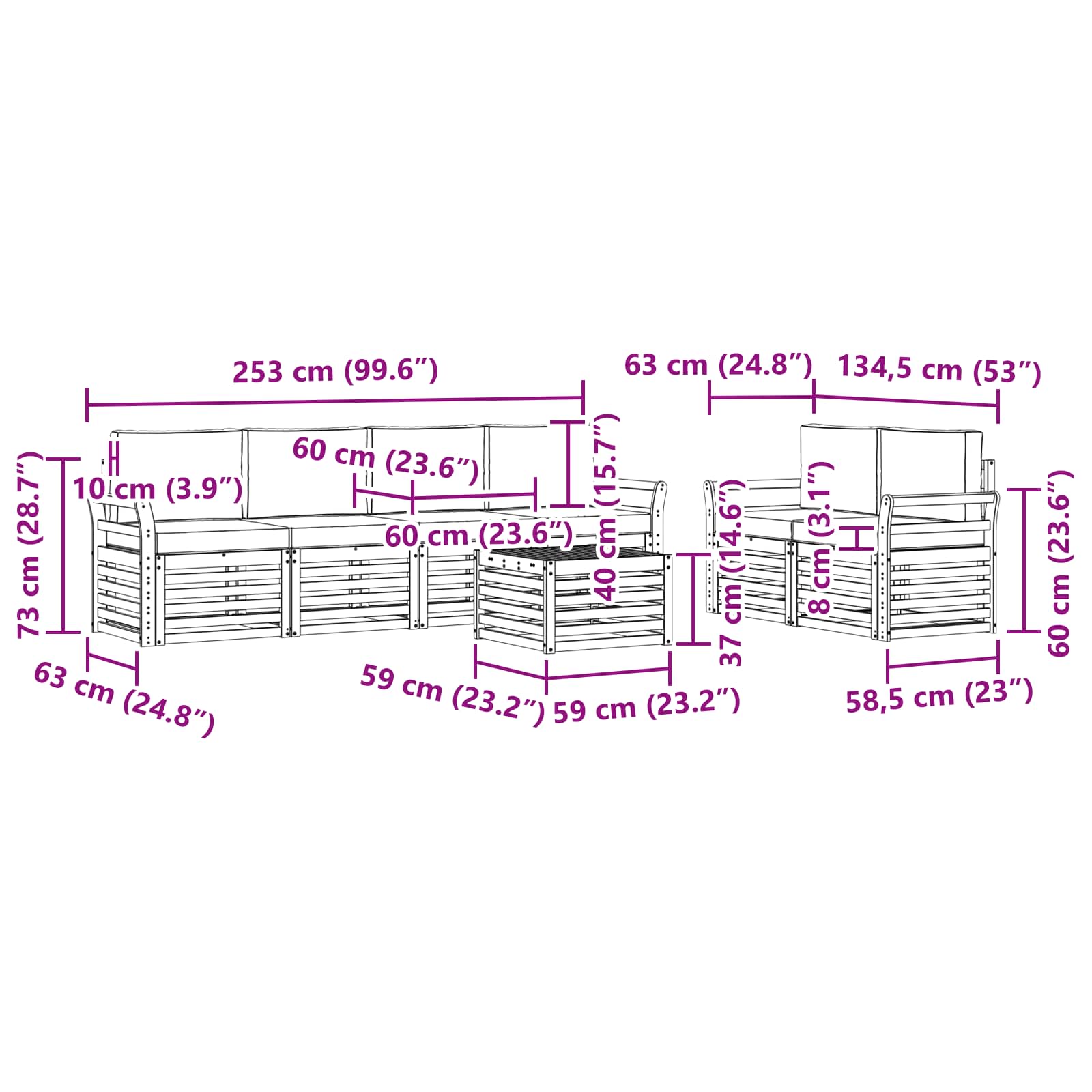 - 6 x Sitzkissen: 60 x 60 x 8 cm (LxBxH)