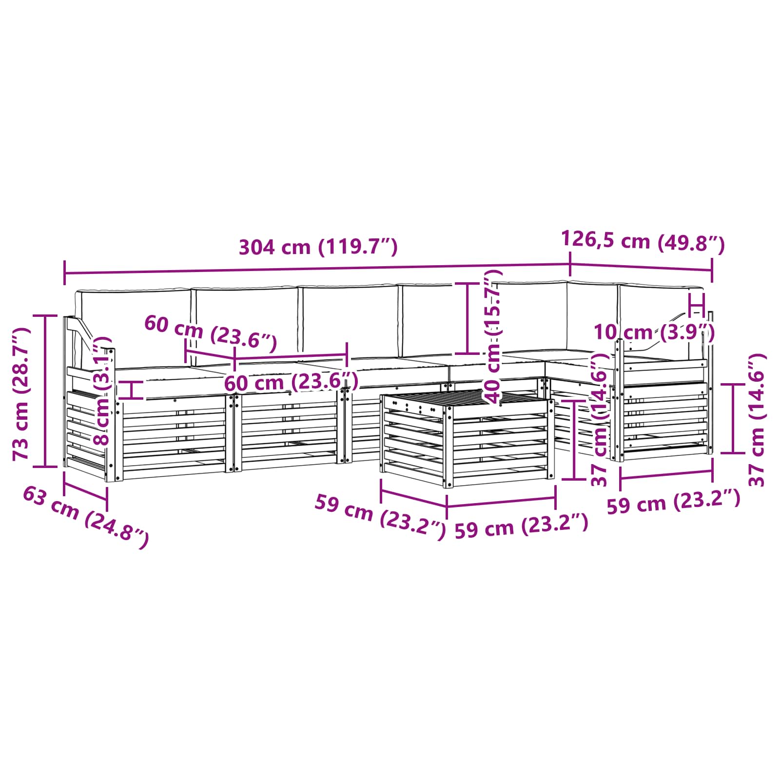 - 6 x Sitzkissen: 60 x 60 x 8 cm (LxBxH)