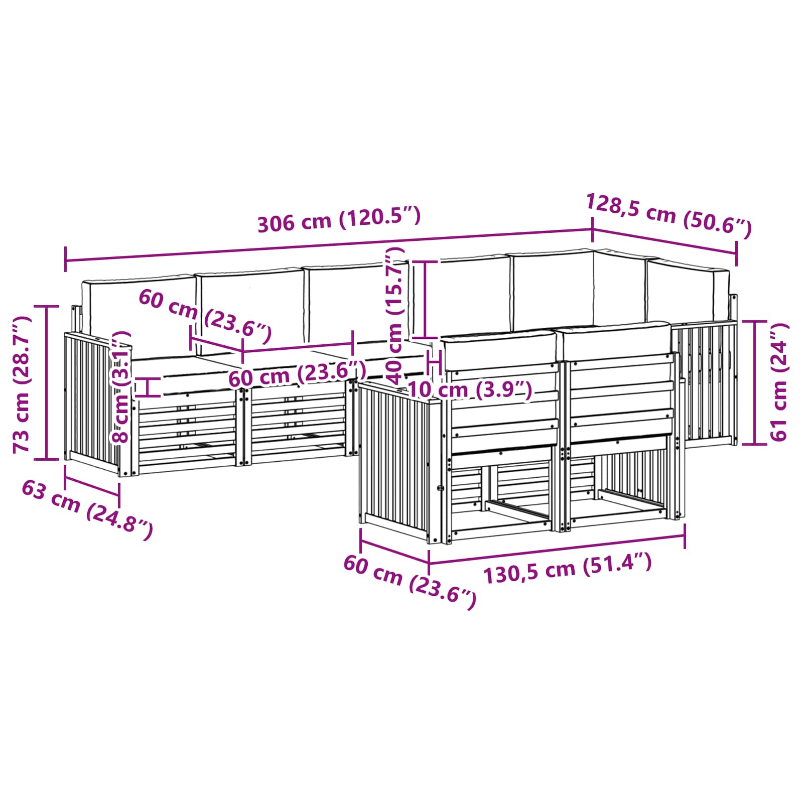 - 8 x Sitzkissen: 60 x 60 x 8 cm (LxBxH)
