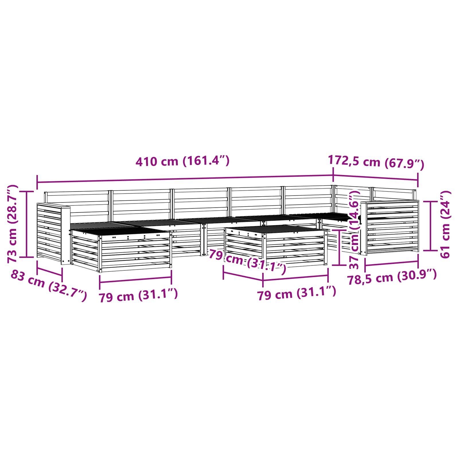 - Gesamtabmessungen: 410 x 172,5 x 73 cm (L x B x H)