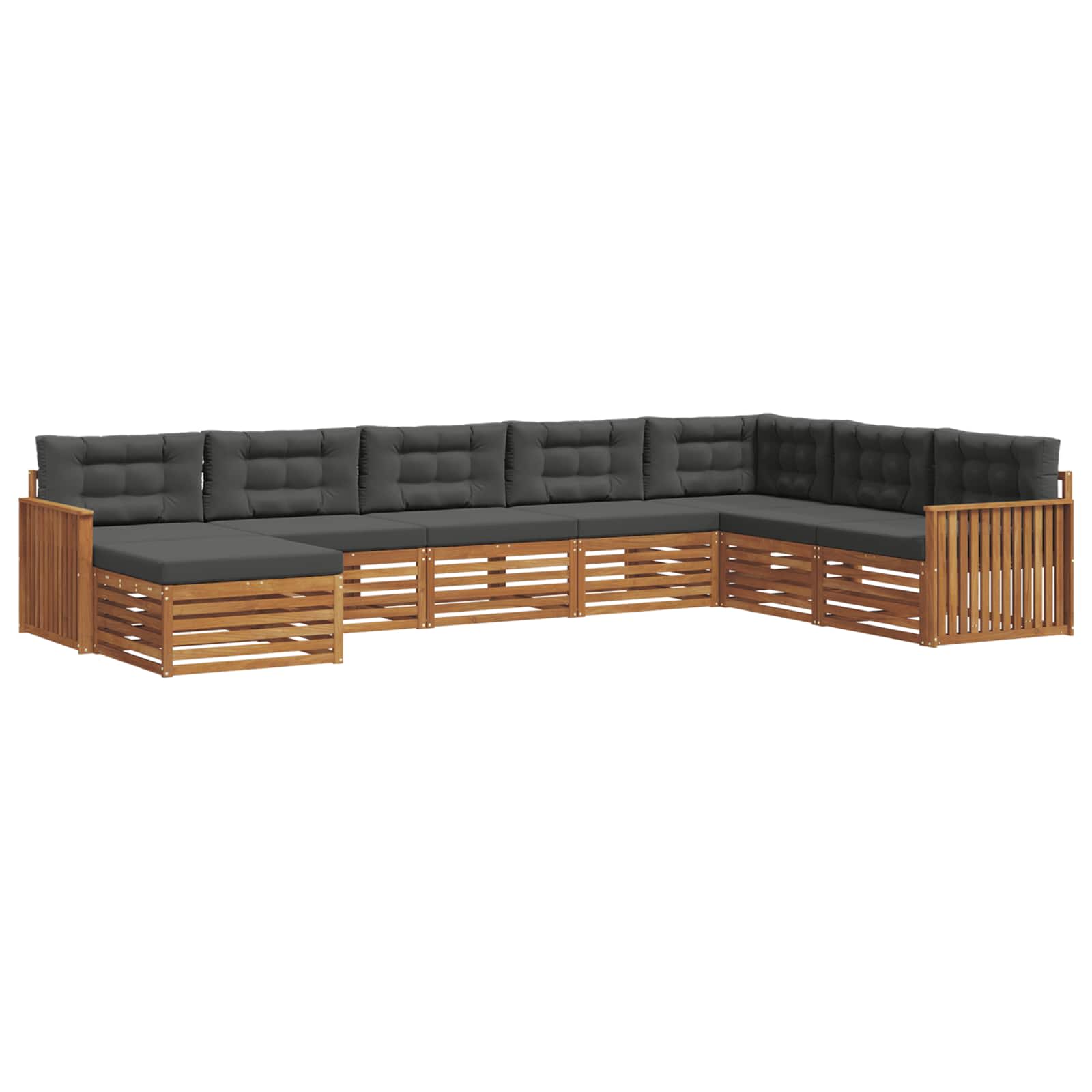 Das Outdoor-Möbelset verbindet Stil und praktische Funktionalität und wird zum Highlight in jedem Garten oder auf jeder Terrasse. Sein modernes Design mit klaren Linien und schlichten Details sorgt für Eleganz und perfekte Umgebung für entspannende Momente oder gesellige Treffen. Komplett aus massivem Akazienholz gefertigt, bietet dieses Set Langlebigkeit und langfristige visuelle Anziehung – die perfekte Wahl für alle, die sowohl Praktisches als auch schickes Design bei Outdoor-Möbeln suchen. Langlebiges Massivholz Akazie: Aus massivem Akazienholz gefertigt, ist dieses Outdoor-Möbelset sehr haltbar und widerstandsfähig. Die robuste Bauweise bietet Unterstützung und Stabilität, während der warme Farbton jede Garten- oder Terrassenumgebung zum Strahlen bringt. Wetterfeste Konstruktion: Das Möbelset hat eine lackierte Oberfläche, die extra Schutz gegen Sonne und leichten Regen bietet. So bleibt das Set sowohl schön als auch funktional und sorgt für langanhaltende Freude in deinem Garten, auf deiner Terrasse oder im Hinterhof. Komponenten & Design: Jedes Teil ist stylisch und praktisch angelegt. Die unterstützenden Features sorgen für noch mehr Komfort, und das harmonische Design macht es perfekt für verschiedene Outdoor-Anlässe. Komfort & Vielseitigkeit: Das modulare Design erlaubt dir flexible Konfigurationen, die sich deinen Bedürfnissen anpassen. Ob für Entspannung, gesellige Runden oder ruhige Lesestunden – dieses Set passt sich mühelos jeder Außenumgebung an und maximiert Komfort und Nutzen. Einfache Pflege: Um die Möbel in gutem Zustand zu halten, wisch die Oberfläche einfach mit einem feuchten Tuch ab und vermeide aggressive Reiniger. Mit regelmäßiger Pflege bleibt das Set wie neu und gibt dir eine hohe Lebensdauer.