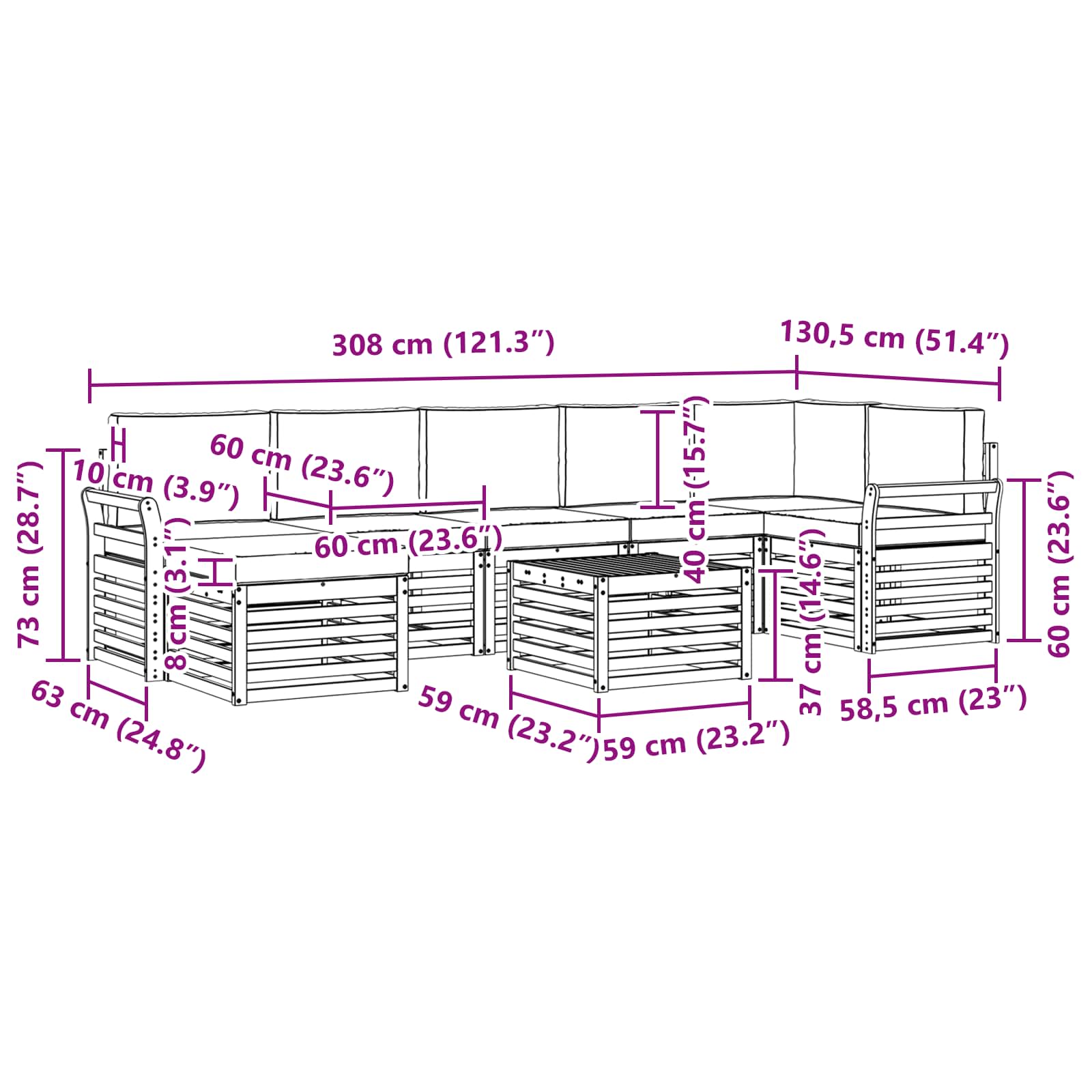 - 7 x Sitzkissen: 60 x 60 x 8 cm (LxBxH)