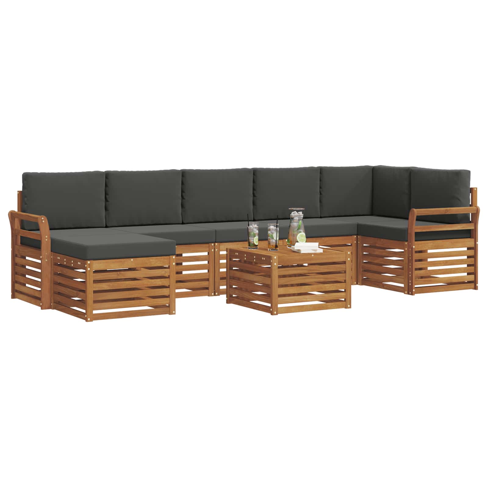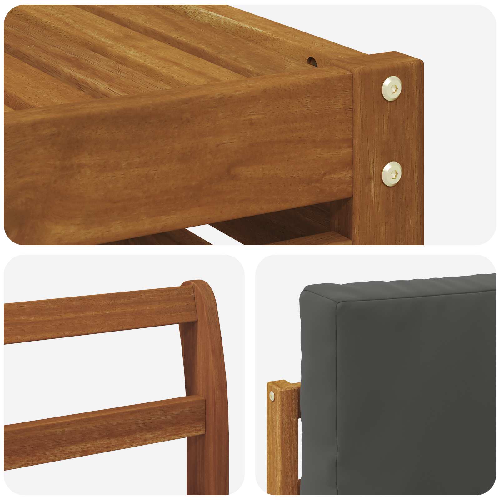 Das Outdoor-Möbelset bringt Stil und Funktion zusammen und ist ein echtes Highlight für jeden Garten oder jede Terrasse. Das moderne Design mit klaren Linien und minimalistischen Details verleiht deinem Außenbereich Eleganz und schafft gleichzeitig eine gemütliche Atmosphäre für Entspannung und gesellige Zusammenkünfte. Hergestellt aus massivem Akazienholz, garantiert das Set Langlebigkeit und bleibt optisch ansprechend – die perfekte Wahl für all jene, die praktische und schicke Gartenmöbel suchen. Robustes Massivholz Akazie: Dieses Outdoor-Möbelset aus massivem Akazienholz ist langlebig und widerstandsfähig gegen Witterungseinflüsse. Es sorgt für Stabilität und ist eine Bereicherung für jeden Garten oder jede Terasse. Wetterfeste Verarbeitung: Mit einer lackierten Oberfläche bietet das Set zusätzlichen Schutz vor Sonne, leichtem Regen und anderen Witterungsbedingungen. Der glänzende Look bleibt erhalten und sorgt dafür, dass die Möbel deine Terrasse oder deinen Garten optimal ergänzen. Stylisches Design: Jedes Element, von den Armlehnen bis zu den Rückenlehnen, ist sowohl stylisch als auch funktional gestaltet. Unterstützende Features sorgen für zusätzlichen Komfort, während das harmonische Design ein einladendes Gesamtbild für verschiedene Outdoor-Anlässe schafft. Komfort & Flexibilität: Das modulare Design ermöglicht dir, die Möbel nach Bedarf umzustellen. Perfekt zum Entspannen oder für gesellige Treffen – dieses Set passt sich jeder Outdoor-Situation an und maximiert den Komfort. Einfache Pflege: Um die Möbel gut in Schuss zu halten, wisch einfach mit einem feuchten Tuch über die Oberfläche und vermeide aggressive Reinigungsmittel. Regelmäßige Pflege hilft dabei, ihr Aussehen zu bewahren und die Lebensdauer der Möbel zu verlängern.