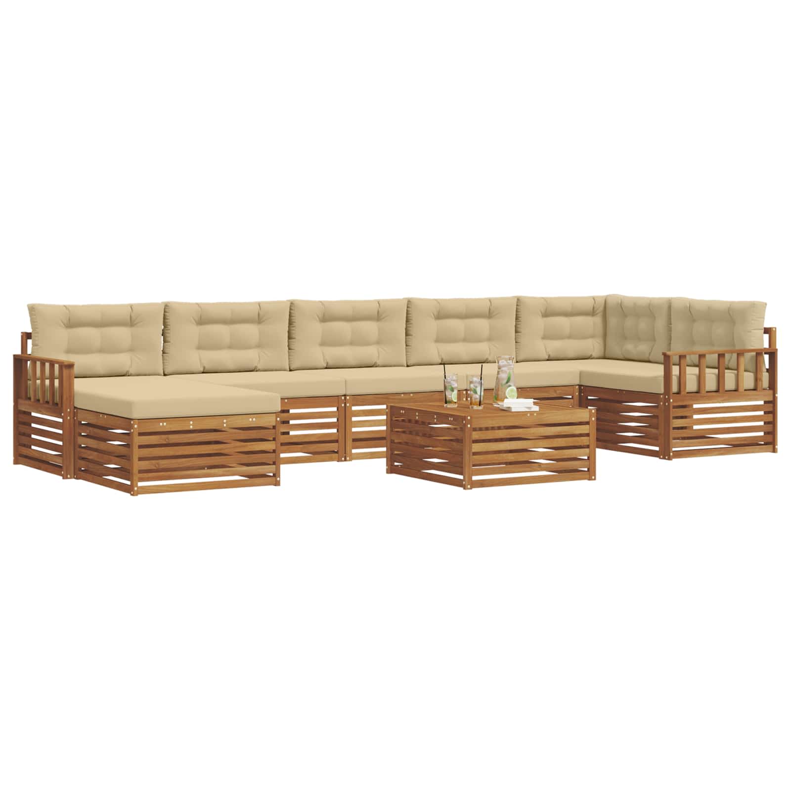 Mit diesem Outdoormöbel-Set verwandelst du deinen Garten, deine Terrasse, deinen Poolbereich oder deinen Hinterhof in eine praktische und einladende Oase. Das Sofa-Set im modernen Look bietet klare Linien und funktionale Designelemente, die sich perfekt in jede Außenumgebung einfügen. Es ist der ideale Ort zum Entspannen oder um Gäste zu bewirten. Seine harmonische Kombination aus natürlichen Holzfarbtönen und robuster Bauweise macht es sowohl stylisch als auch praktisch. Qualitätshandwerk: Hergestellt aus solidem Akazienholz, hat dieses Sofa-Set einen natürlichen, warmen Braunton, der Eleganz und Wohlfühl-Atmosphäre ausstrahlt. Das Material ist langlebig, wetterbeständig und perfekt für den Einsatz im Freien. Akazienholz ist widerstandsfähig und sorgt dafür, dass das Set auch nach vielen Saisons toll aussieht. Integrierte Flexibilität: Das modulare Design lässt dir die Freiheit, die Teile je nach Bedarf umzustellen. Ob für eine große Feier oder eine heimelige Ecke für ruhige Abende, das Set kann einfach neu angeordnet werden und erhöht die Flexibilität für jedes Außenumfeld. Stylische Praktikabilität: Das Sofa kombiniert einen Lattenrücken mit einem stabilen Rahmen und balanciert so Stil und Komfort. Die minimalistischen Armlehnen und die klaren Oberflächen geben dem Sofa ein modernes Aussehen, sodass es perfekt in zeitgemäße Außenbereiche passt. Die schlanken Linien verstärken die visuelle Anziehung und sorgen für ein bequemes Sitzgefühl. Komplementäre Komponenten: Das Sofa hat essentielle Teile wie einen Lattenrücken und robuste Armlehnen aus solidem Akazienholz, die für Qualität und Stabilität stehen. Es bietet Platz für verschiedene Kissen, die den Komfort steigern, ohne das cleane Design zu stören. Pflege und Wartung: Das Set ist praktisch in der Pflege, es braucht nur ein einfaches Abwischen mit einem feuchten Tuch, um gut auszusehen. Mit regelmäßiger Pflege bleibt es langlebig und behält seine Anziehungskraft, und das macht es zur perfekten Wahl für jeden Außenbereich.