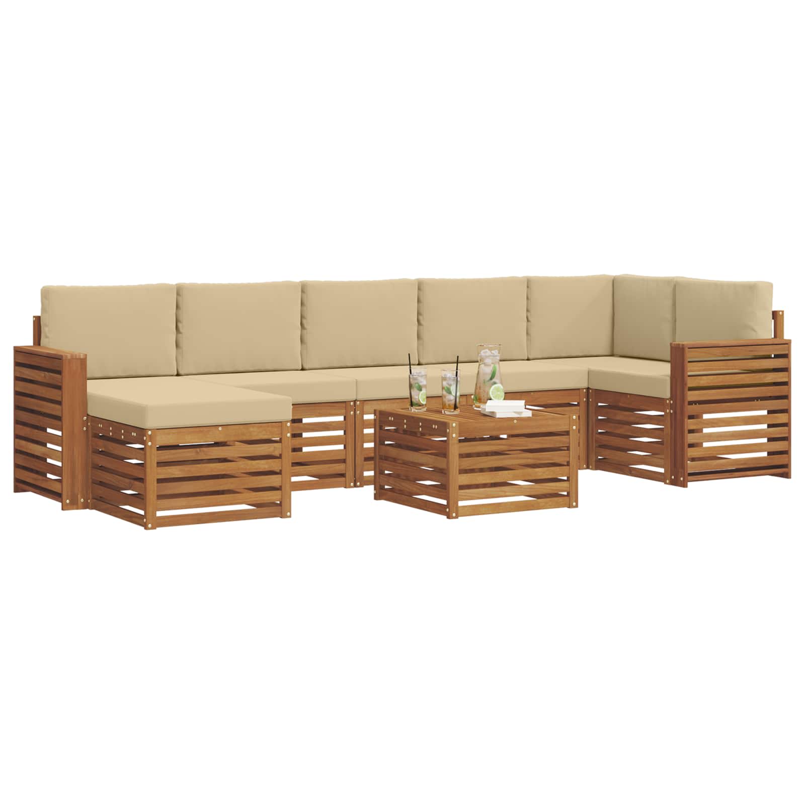 Das Outdoor-Möbelset bringt Stil und Funktion zusammen und ist ein echtes Highlight für jeden Garten oder jede Terrasse. Das moderne Design mit klaren Linien und minimalistischen Details verleiht deinem Außenbereich Eleganz und schafft gleichzeitig eine gemütliche Atmosphäre für Entspannung und gesellige Zusammenkünfte. Hergestellt aus massivem Akazienholz, garantiert das Set Langlebigkeit und bleibt optisch ansprechend – die perfekte Wahl für all jene, die praktische und schicke Gartenmöbel suchen. Robustes Massivholz Akazie: Dieses Outdoor-Möbelset aus massivem Akazienholz ist langlebig und widerstandsfähig gegen Witterungseinflüsse. Es sorgt für Stabilität und ist eine Bereicherung für jeden Garten oder jede Terasse. Wetterfeste Verarbeitung: Mit einer lackierten Oberfläche bietet das Set zusätzlichen Schutz vor Sonne, leichtem Regen und anderen Witterungsbedingungen. Der glänzende Look bleibt erhalten und sorgt dafür, dass die Möbel deine Terrasse oder deinen Garten optimal ergänzen. Stylisches Design: Jedes Element, von den Armlehnen bis zu den Rückenlehnen, ist sowohl stylisch als auch funktional gestaltet. Unterstützende Features sorgen für zusätzlichen Komfort, während das harmonische Design ein einladendes Gesamtbild für verschiedene Outdoor-Anlässe schafft. Komfort & Flexibilität: Das modulare Design ermöglicht dir, die Möbel nach Bedarf umzustellen. Perfekt zum Entspannen oder für gesellige Treffen – dieses Set passt sich jeder Outdoor-Situation an und maximiert den Komfort. Einfache Pflege: Um die Möbel gut in Schuss zu halten, wisch einfach mit einem feuchten Tuch über die Oberfläche und vermeide aggressive Reinigungsmittel. Regelmäßige Pflege hilft dabei, ihr Aussehen zu bewahren und die Lebensdauer der Möbel zu verlängern.