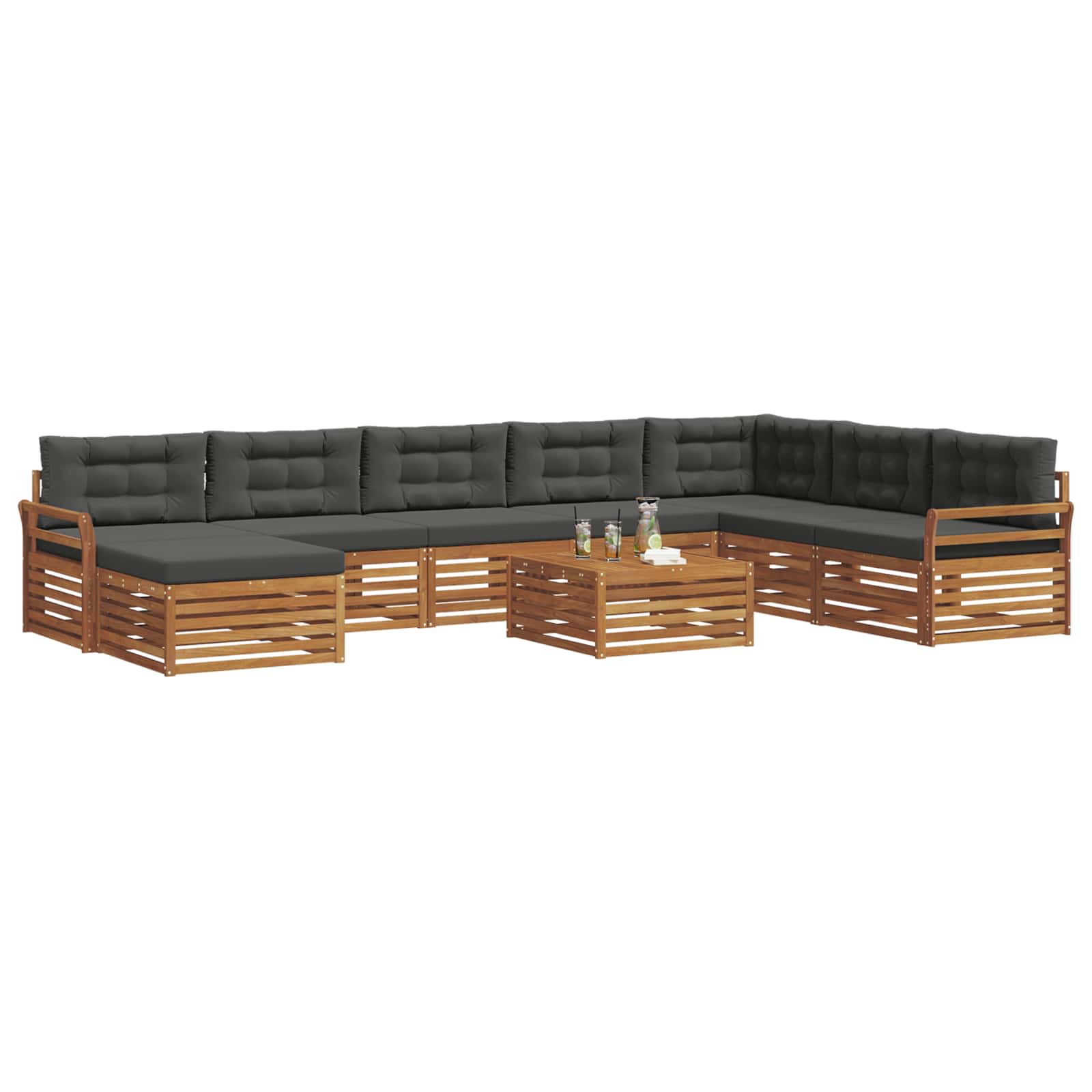 Das modulare Sofa-Set für den Außenbereich ist ein echter Blickfang, der jeden Garten, jede Terrasse oder jeden Poolbereich aufpeppen kann. Mit seinem modernen, einfachen Stil bringt es Klarheit und eine schlichte Ästhetik, die perfekt zum Entspannen oder für gesellige Abende geeignet sind. Die schicke braune Farbe fügt sich nahtlos in die Umgebung ein und bietet ausreichend Platz für gemeinsame gemütliche Stunden mit Familie und Freunden. Materialkonstruktion: Hergestellt aus solidem Akazienholz bringt dieses Sofa-Set Langlebigkeit und verleiht jedem Außenbereich eine schöne, natürliche Note. Die dichte Holzmaserung sorgt für eine warme, einladende Atmosphäre, während die natürlichen Öle das Holz vor Schädlingen schützen und für eine lange Nutzungsdauer sorgen. Modernes Design: Mit schlichten Linien und minimalistisch gehalten, passt es perfekt in moderne Außenbereiche. Der warme Braunton harmoniert schön mit grünen Pflanzen und macht es zu einer tollen Wahl für jeden Garten. Die modulare Bauweise lässt sich ganz einfach an deine Platz- und Sitzwünsche anpassen. Komfortmerkmale: Der Akazienholz-Sitz und die Kissen aus 100% Polyester sorgen zusammen für eine bequeme und einladende Fläche zum Relaxen. Der Stoff ist weich, robust und leicht zu pflegen, was für jede Menge Komfort beim Entspannen draußen sorgt. Komponentenintegration: Die stabilen Armlehnen und der Lattenrücken sorgen für ergonomisches Sitzen und extra Unterstützung, perfekt für lange, entspannte Nachmittage. Einfache Pflege: Halte das Sofa-Set schnell und einfach sauber – ein feuchtes Tuch reicht, um Staub und Schmutz zu entfernen. So bleibt es immer in Topform und sorgt für frischen Look das ganze Jahr über.