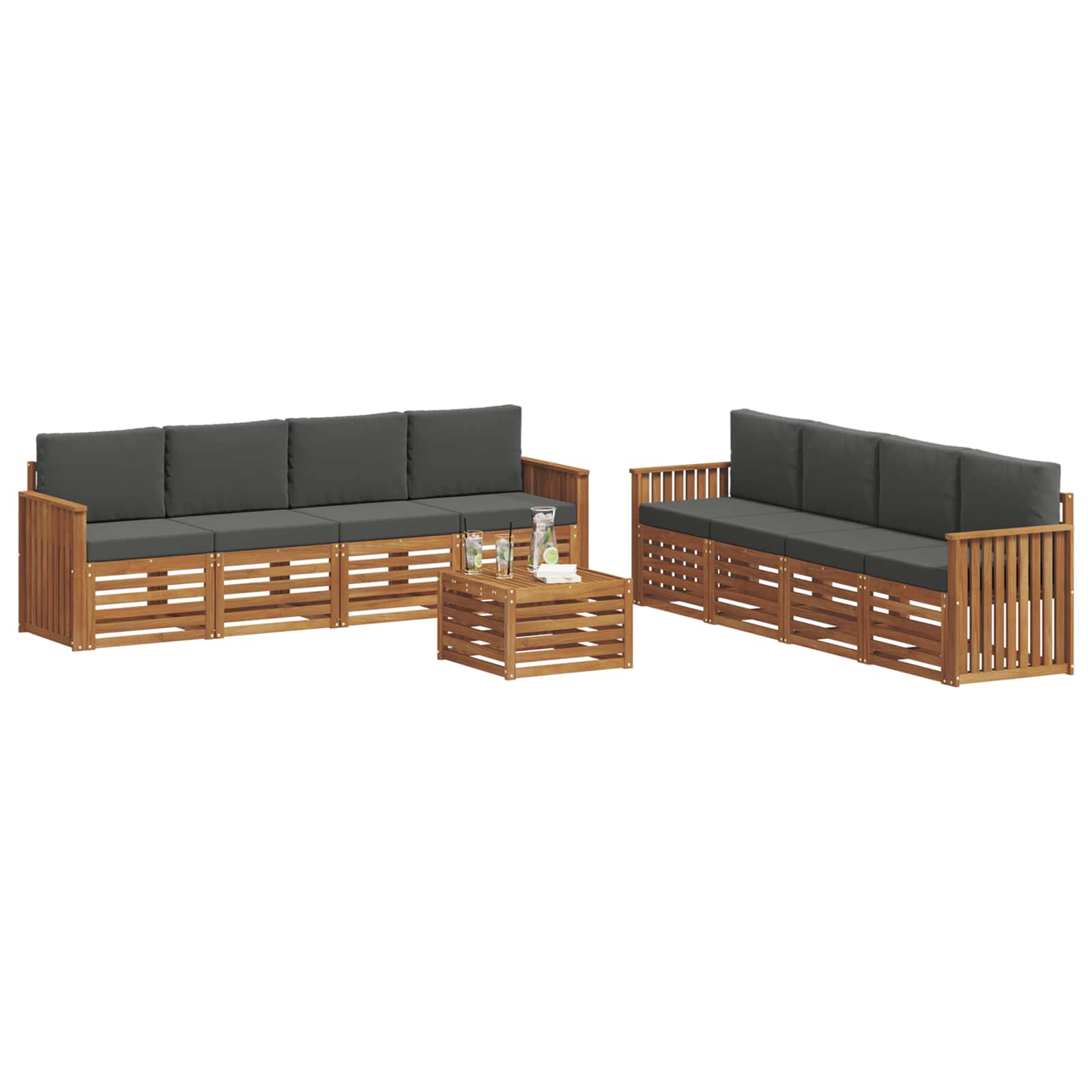 Das Outdoor-Möbelset kombiniert Stil und Funktionalität und setzt ein tolles Highlight in jedem Garten oder auf jeder Terrasse. Das moderne Design mit klaren Linien und wenigen Details sorgt für Eleganz und unterstützt die Entspannung im Freien sowie gesellige Zusammenkünfte. Aus solidem Akazienholz gefertigt steht das Set für Langlebigkeit und anhaltende Schönheit - die perfekte Wahl für alle, die praktische und schicke Möbel für draußen suchen. Langlebiges Massivholz Akazie: Hergestellt aus solidem Akazienholz, dieses Outdoor-Möbelset ist bekannt für seine Robustheit und Wetterbeständigkeit. Die stabile Bauweise sorgt für starken Halt und langanhaltende Stabilität, während der warme Holzton den Garten oder die Terrasse aufpeppt. , Wetterfeste Bauweise: Das Outdoor-Möbelset hat eine lackierte Oberfläche, die zusätzlichen Schutz gegen Sonnenstrahlen, leichten Regen und andere Wetterbedingungen bietet. Die polierte Oberfläche hilft, das Aussehen und die Funktionalität zu erhalten, damit dein Möbelset lange in Topform bleibt. , Komponenten & Design: Jedes Stück, von den Armlehnen bis zu den Rückenlehnen, ist für Stil und Funktion gemacht. Die unterstützenden Merkmale bieten extra Komfort, während das stimmige Design ein harmonisches Ensemble für verschiedene Outdoor-Anlässe bildet. , Komfort & Vielseitigkeit: Das modulare Design ermöglicht dir, es für unterschiedliche Räume und Bedürfnisse flexibel zu gestalten. Ob zum Relaxen, für gesellige Abende oder ruhige Lesemomente, das Set passt sich einfach jeder Umgebung an und bietet maximalen Komfort. , Einfache Pflege & Wartung: Halte das Möbel im coolen Zustand, indem du die Oberfläche einfach mit einem feuchten Tuch abwischt. Vermeide aggressive Putzmittel. Regelmäßige Pflege bewahrt das Aussehen und verlängert die Lebensdauer deiner Möbel.