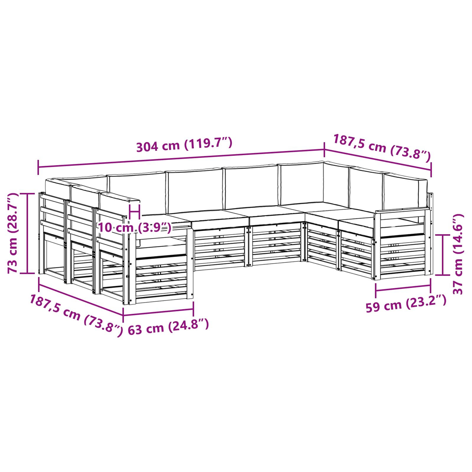 - 9 x Sitzkissen: 60 x 60 x 8 cm (LxBxH)
