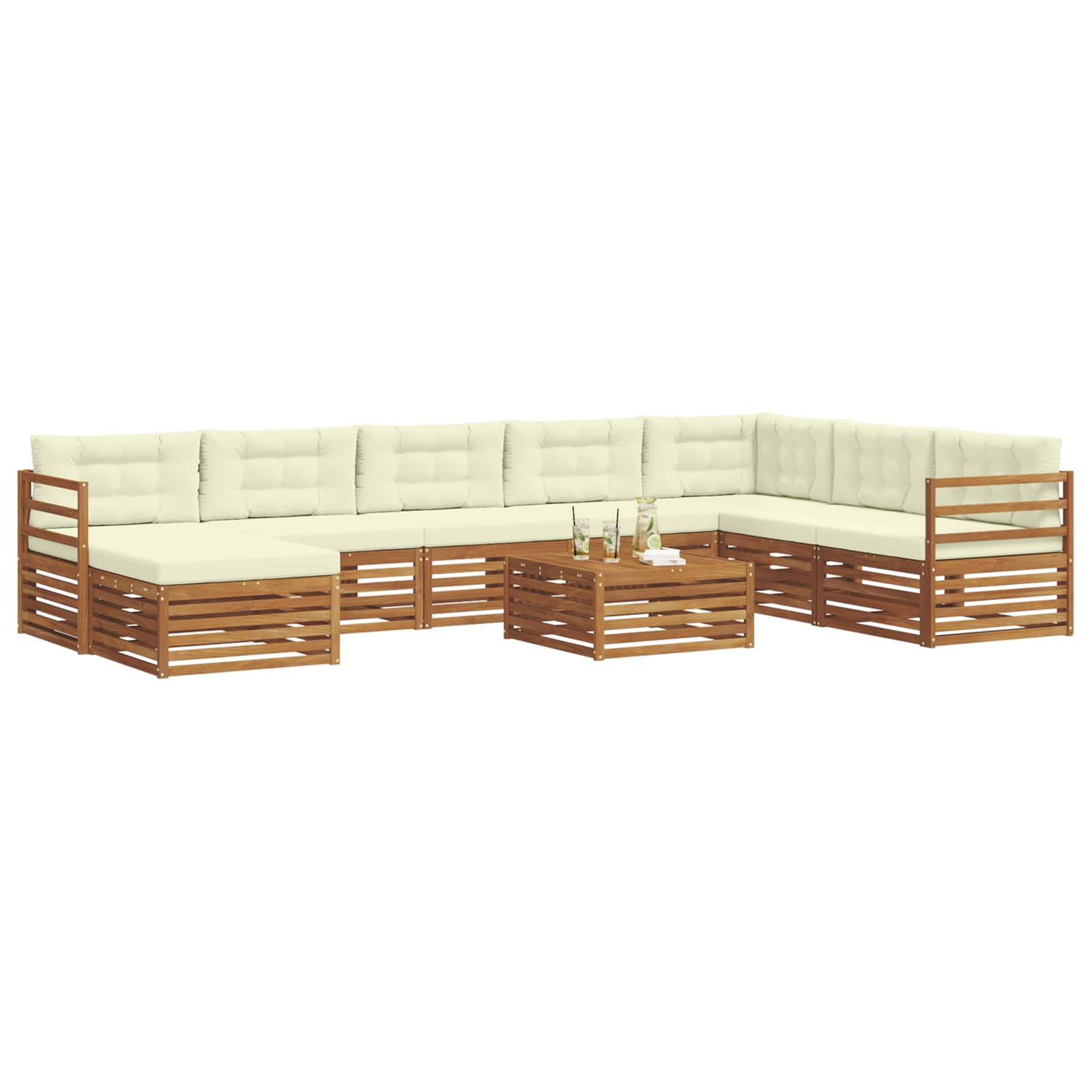 Das modulare Sofa-Set für den Außenbereich ist ein echter Blickfang, der jeden Garten, jede Terrasse oder jeden Poolbereich aufpeppen kann. Mit seinem modernen, einfachen Stil bringt es Klarheit und eine schlichte Ästhetik, die perfekt zum Entspannen oder für gesellige Abende geeignet sind. Die schicke braune Farbe fügt sich nahtlos in die Umgebung ein und bietet ausreichend Platz für gemeinsame gemütliche Stunden mit Familie und Freunden. Materialkonstruktion: Hergestellt aus solidem Akazienholz bringt dieses Sofa-Set Langlebigkeit und verleiht jedem Außenbereich eine schöne, natürliche Note. Die dichte Holzmaserung sorgt für eine warme, einladende Atmosphäre, während die natürlichen Öle das Holz vor Schädlingen schützen und für eine lange Nutzungsdauer sorgen. Modernes Design: Mit schlichten Linien und minimalistisch gehalten, passt es perfekt in moderne Außenbereiche. Der warme Braunton harmoniert schön mit grünen Pflanzen und macht es zu einer tollen Wahl für jeden Garten. Die modulare Bauweise lässt sich ganz einfach an deine Platz- und Sitzwünsche anpassen. Komfortmerkmale: Der Akazienholz-Sitz und die Kissen aus 100% Polyester sorgen zusammen für eine bequeme und einladende Fläche zum Relaxen. Der Stoff ist weich, robust und leicht zu pflegen, was für jede Menge Komfort beim Entspannen draußen sorgt. Komponentenintegration: Die stabilen Armlehnen und der Lattenrücken sorgen für ergonomisches Sitzen und extra Unterstützung, perfekt für lange, entspannte Nachmittage. Einfache Pflege: Halte das Sofa-Set schnell und einfach sauber – ein feuchtes Tuch reicht, um Staub und Schmutz zu entfernen. So bleibt es immer in Topform und sorgt für frischen Look das ganze Jahr über.