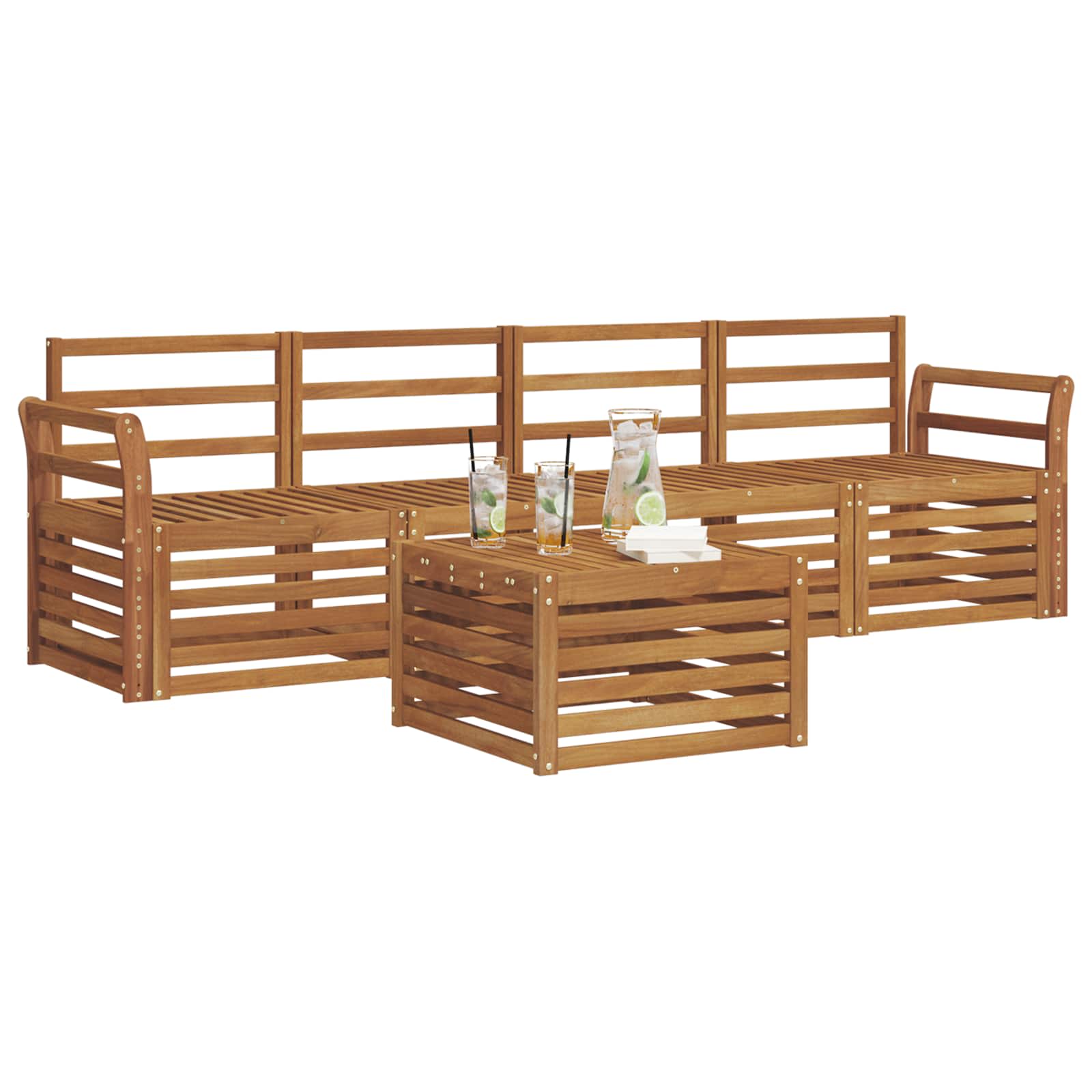 Das Gartenset vereint coolen Style mit praktischer Funktionalität und zieht alle Blicke auf sich! Sein modernes Design mit klaren Linien sorgt für einen eleganten Touch und ist perfekt zum Entspannen oder für gesellige Abende. Aus massivem Akazienholz gefertigt, ist es super langlebig und sieht gleichzeitig toll aus – die perfekte Wahl für alle, die Wert auf Praktikabilität und fesselndes Design legen! Langlebiges massivholz akazie: Dieses Gartenmöbelset ist aus echtem Akazienholz, bekannt für seine Widerstandsfähigkeit und Langlebigkeit. Die robuste Bauart sorgt für lange Haltbarkeit und die natürliche Farbgebung wertet jeden Garten auf. Wetterfestes design: Dank der lackierten Oberfläche ist deinSet gut geschützt gegen Sonne und leichten Regen. Die glatte Oberfläche sorgt dafür, dass es gut aussieht und lange hält, egal wo du es draußen einsetzt. Durchdachte komponenten: Jedes Element, vom Gestell bis zu den Rückenlehnen, ist stylisch und praktikabel. Die Rückenlehnen geben zusätzlichen Halt, und das durchgehende Design sieht in jeder Outdoor-Umgebung klasse aus. Komfort & vielfalt: Das modulare Design ermöglicht dir, die Sofas flexibel zu kombinieren, egal wo du sie brauchst. Ob für entspannte Stunden, Partys oder gemütliche Lesezeiten, dieses Set passt sich perfekt an und sorgt für besten Komfort. Einfache pflege: Halte die Möbel in Top-Zustand mit einem feuchten Tuch und verwende keine aggressiven Reiniger. Ein bisschen Pflege reicht aus, um die Möbel frisch aussehen zu lassen und ihre Lebensdauer zu verlängern.