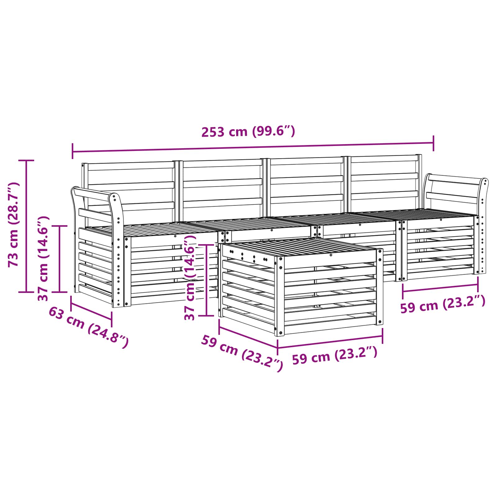 - 4 x Mittelsessel: 63 x 59 x 73 cm (LxBxH)