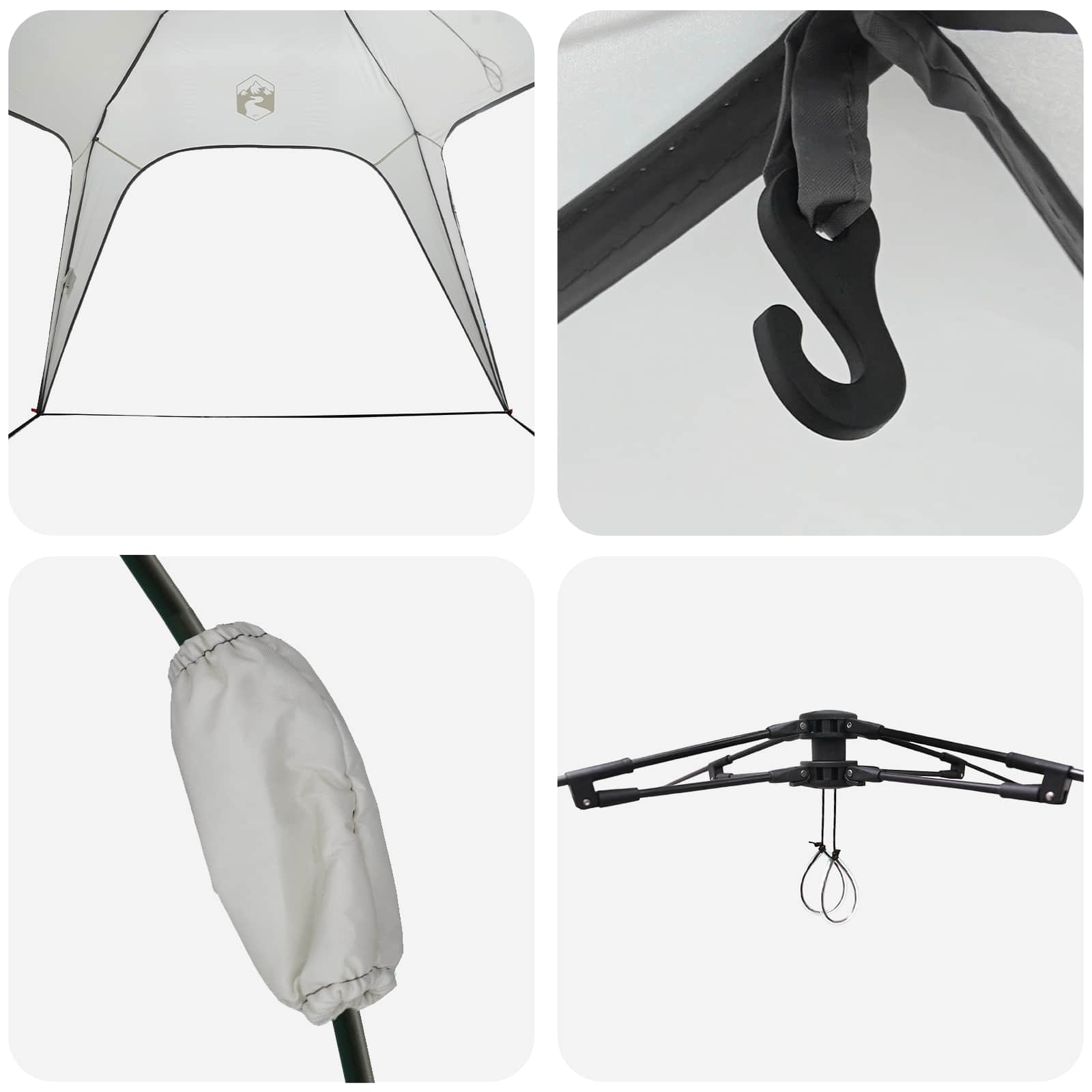 Das moderne Instant-Zelt ist ein Must-Have für jeden Outdoor-Fan, designed für ein reibungsloses Camping-Erlebnis. Das Zelt hat ein stylisches und funktionales Design und ist perfekt für alle, die einen zuverlässigen Unterschlupf suchen. Ob für ein Solo-Abenteuer oder einen Ausflug mit Freunden, es bietet Flexibilität und passt in jede Situation. Die Einrichtung geht schnell und einfach und hält dich komfortabel und geschützt vor dem Wetter. Material: Hergestellt aus robustem Stahl, bietet das moderne Instant-Zelt Langlebigkeit auf allen Terrains. Die Stahlaußenstruktur hält auch schlechtem Wetter stand und sorgt für ein zuverlässiges Outdoor-Erlebnis. Das stabile Gerüst bekräftigt die Haltbarkeit des Zeltes und trotzt den Elementen, ohne an Stabilität zu verlieren. Inklusive Komponenten: Das Camping-Paket kommt mit allem, was du brauchst: einem Zelt, einer Wand, vier stabilen Abspannseilen zur Sicherung, acht Heringen für festen Halt und einem Tragbeutel für den einfachen Transport. Alle Teile machen den Camping-Prozess einfach und ordentlich, alles kann gut im Tragbeutel verstaut werden. Einfache Einrichtung und Nutzung: Dank eines Schnellfreigabefunks sorgt das Zelt für einen blitzschnellen Aufbau. Die versteckten Reißverschlüsse sorgen für einen sauberen Look, der Stil und Funktion verbindet. Mit mehreren Türen kannst du ganz einfach rein und raus gehen, was schnelle Übergänge und gute Belüftung bedeutet. Vielseitiger Outdoor-Einsatz: Ideal für Sommer-Camping, passt sich das moderne Instant-Zelt an unterschiedlichste Outdoor-Situationen an. Mit einer Fläche von 6,76 m² hast du locker Platz zum Chillen und Schlafen. Für jeden begeisterten Camper wird dieses Zelt ein Rückzugsort mitten in der Natur. Pflege: Pflege ist einfach, ein Wisch mit einem feuchten Tuch genügt. Diese einfache Methode verlängert die Lebensdauer des Zeltes und sorgt dafür, dass es bei jedem Gebrauch frisch bleibt. Das kompakte Falt-Design macht die Lagerung nach dem Camping leicht und sorgt für extra Komfort.