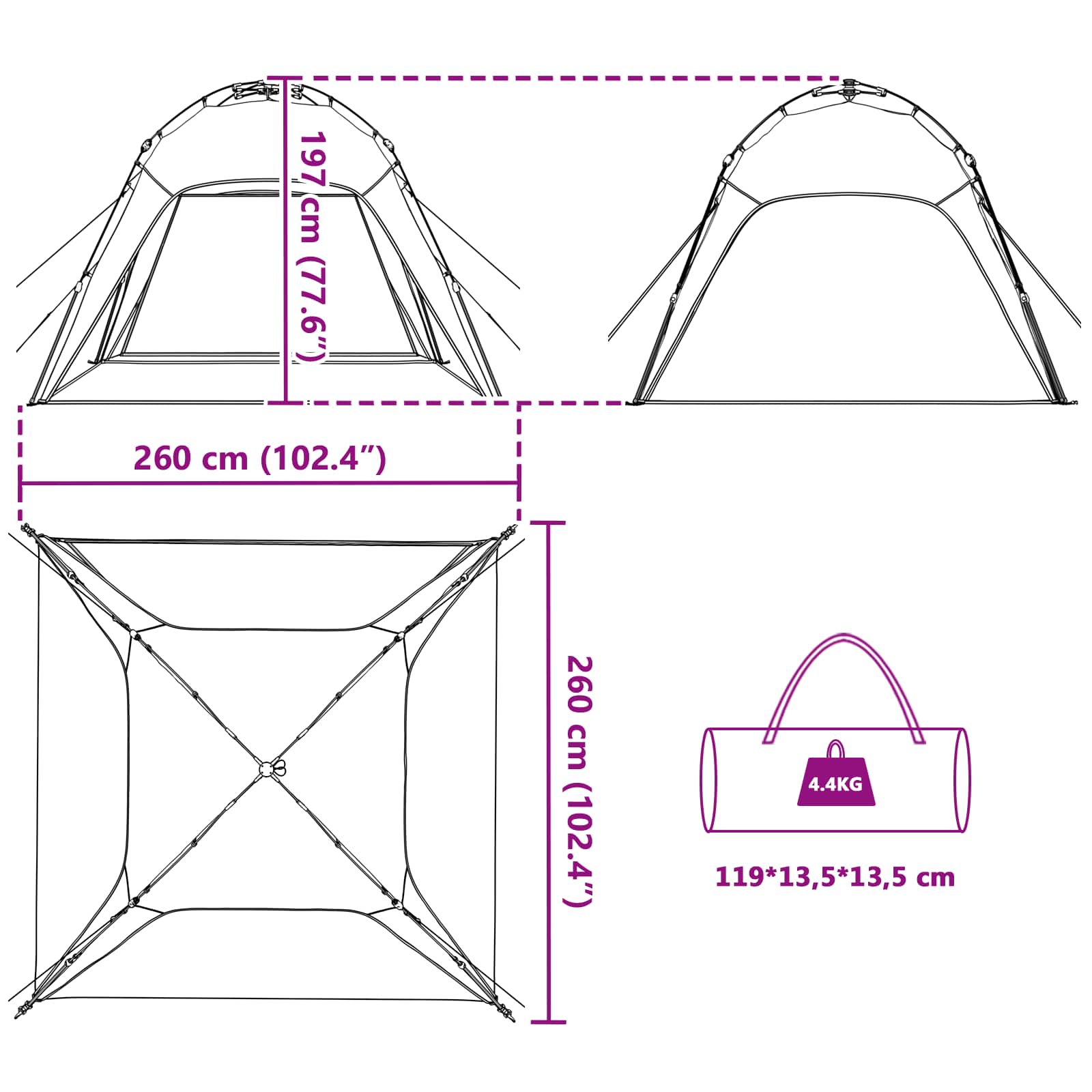 - Floor Size: 260 x 260 cm