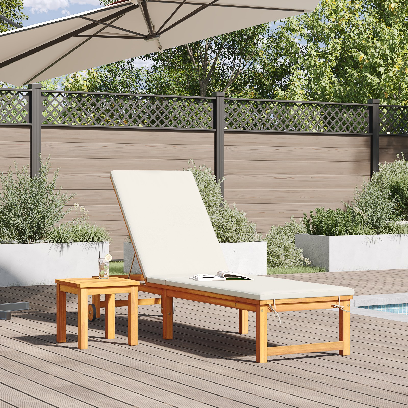Diese gepolsterte Sonnenliege ist genau das Richtige für entspannte Stunden im Freien. Bequem und stylisch, perfekt, um sonnige Tage zu genießen. Dank der glatten Oberfläche aus Akazienholz passt sie in jedes Outdoor-Setting, sei es auf deinem Balkon, deiner Terrasse oder am Pool. Sie ist der ideale Rückzugsort für eine Auszeit im Freien. Die verstellbare Rückenlehne hat drei Positionen; perfekt zum Lesen, Sonnenbaden oder einfach Entspannen und bietet je nach Wunsch unterschiedlichen Komfort. Hergestellt aus massivem Akazienholz, ist sie ultra langlebig und trotzt jedem Wetter, sodass du viele Saisons Freude daran hast. Die leichte und faltbare Bauweise sorgt dafür, dass sie sich super transportieren lässt und schnell aufgebaut oder verstaut werden kann für all deine Outdoor-Abenteuer. Mit ihrem schicken matten Finish gibt die Sonnenliege deinem Außenbereich einen eleganten Touch und wird deine Gäste mit ihrem stylischen Look beeindrucken. Für eine Person ausgelegt, bietet sie viel Platz für ultimativen Komfort ohne Abstriche beim Style, perfekt zum Relaxen.