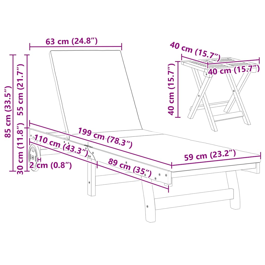 - 1 x 2-Personen Sonnenliege: 199 x 63 x 85 cm (LxBxH)