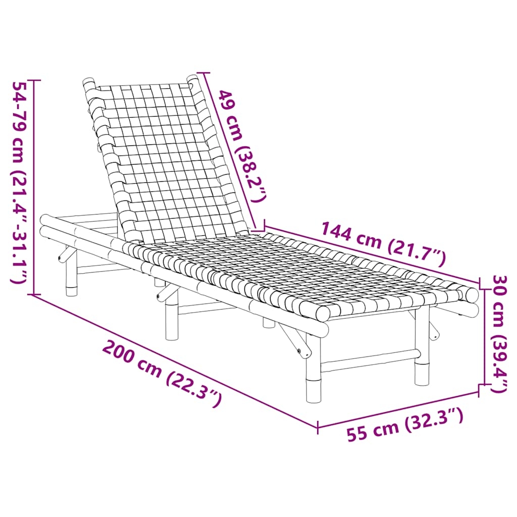 Diese klassische Sonnenliege eignet sich ideal zum Sonnenbaden und Entspannen in der Nähe des Pools, auf der Terrasse oder im Garten. Stabil und langlebig: Bambus ist leicht, wasserbeständig und stark und eignet sich daher hervorragend für verschiedene Anwendungen wie Möbel, Bauwesen, Handwerk und Dekorationsartikel.Langlebiges Material: Polypropylenfasern sind strapazierfähig, langlebig, komfortabel und resistent gegen Feuchtigkeit, Flecken, Chemikalien und das Ausbleichen durch Sonnenlicht, was sie vielseitig und pflegeleicht macht.Verstellbare Rückenlehne: Dieses Möbelstück verfügt über eine 3-fach verstellbare Rückenlehne, um stets die bequemste Position zum Entspannen zu finden.Gurtdesign: Die Sitzfläche und die Rückenlehne der Gartenliege bestehen aus Gurten und sind daher komfortabel, elegant und atmungsaktiv. Gut zu wissen:Wir empfehlen dir, deine Gartenmöbel mit einer wasserdichten Hülle zu schützen, um lange Zeit eine ansprechende Optik aufzuweisen.