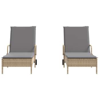 Entspanne dich und genieße deinen Außenbereich auf diesen bequemen Sonnenliegen! Langlebiges Material: PE-Rattan, auch als Poly Rattan bekannt, ist ein robustes, pflegeleichtes synthetisches Material, das die Optik von natürlichem Rattan aufweist. Es kennzeichnet sich durch ein geringes Eigengewicht und lässt sich einfach reinigen. Aufgrund seiner Haltbarkeit und Witterungsbeständigkeit wird es häufig bei der Herstellung von Gartenmöbeln verwendet.Verstellbare Rückenlehne: Dieses Möbelstück verfügt über eine 3-fach verstellbare Rückenlehne, um stets die bequemste Position zum Entspannen zu finden.Einfacher Transport: Dank der 2 Räder lassen sich die Sonnenliegen mühelos umher verschieben.Bequemes Sitzerlebnis: Dank des dick gepolsterten Kissens bietet dieser Gartenhocker höchsten Sitzkomfort.Abnehmbarer und waschbarer Bezug: Das Sitzkissen verfügt über einen abnehmbaren Bezug, der sich ganz einfach waschen und pflegen lässt. Gut zu wissen:Wir empfehlen dir, deine Gartenmöbel mit einer wasserdichten Hülle zu schützen, um lange Zeit eine ansprechende Optik aufzuweisen.