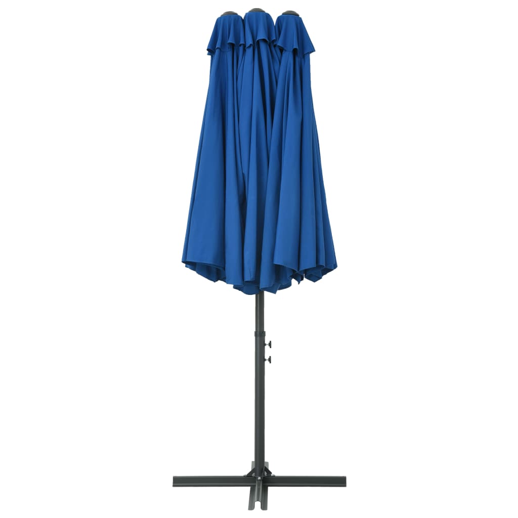Dieser elegante Doppel-Sonnenschirm ist die perfekte Wahl, um etwas Schatten zu spenden und Schutz vor schädlichen UV-Strahlen zu bieten. Aus UV-beständigem und farbechtem Polyester gefertigt, bietet dieser pflegeleichte Sonnenschirm optimalen Schutz vor schädlichen Sonnenstrahlen. Er verfügt über einen stabilen Kreuzfuß, der für erhöhte Stabilität sorgt. Das exklusive Design dieses Sonnenschutzes bietet extra viel Platz im Schatten. Der robuste Alumast und die 12 starken Schirmrippen verleihen dem Gartenschirm Stabilität und Langlebigkeit. Zudem lässt sich dieser Gartenschirm mittels Kurbel leicht öffnen und schließen. Der Artikel lässt sich leicht zusammenbauen. Bitte beachten: Wir empfehlen, die Schirmbespannung mit einem Imprägnierspray zu behandeln, wenn es starken Regenfällen ausgesetzt ist.