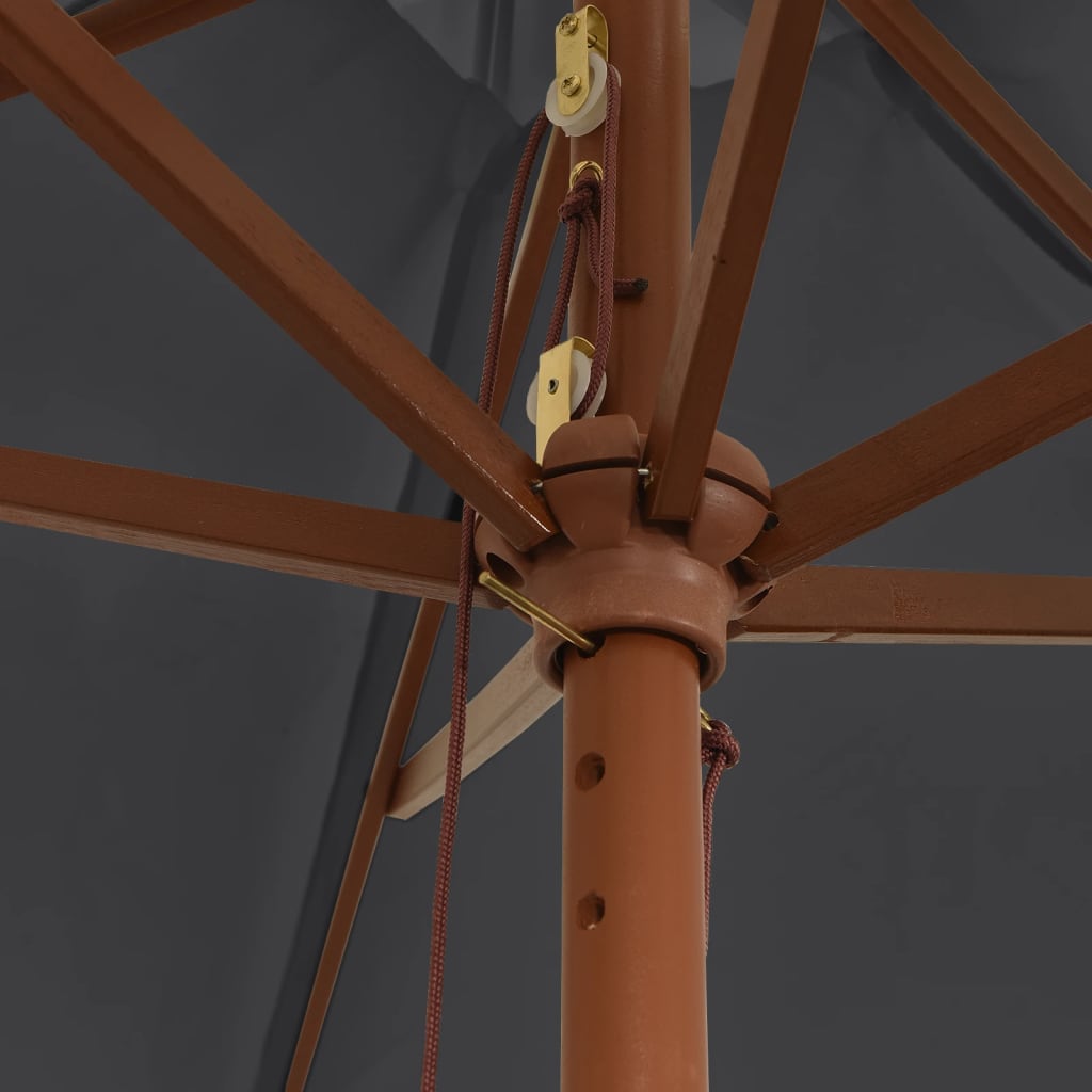 Dieser Sonnenschirm eignet sich perfekt, um Schatten zu spenden und dich vor den schädlichen UV-Strahlen der Sonne zu schützen. Langlebiges Material: Aus UV-beständigem und lichtechtem Polyester gefertigt, bietet der Sonnenschirm optimalen Schutz vor der Sonne und lässt sich einfach reinigen.Stabiles Gestell: Dank des robusten Mastes aus Hartholz und der langlebigen Rippen ist der Gartenschirm sehr stabil und langlebig.Belüftung: Das zusätzliche Stück Stoff an der Oberseite des Schirms lässt Wind und Wärme durch, was den Sonnenschirm zu einer wunderbaren Wahl für deinen Außenbereich macht.Einfache Bedienung: Der Sonnenschirm lässt sich dank des Seilzugsystems leicht öffnen und schließen. Hinweis:Dieses Produkt ist nicht zu 100 % wasserdicht. Wir empfehlen daher, es mit einem Imprägnierspray zu behandeln, um eine bessere Wasserfestigkeit zu gewährleisten.