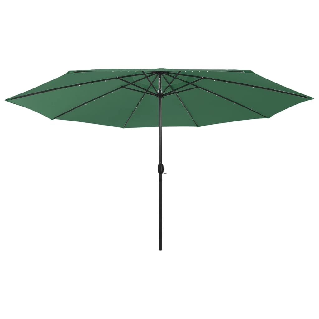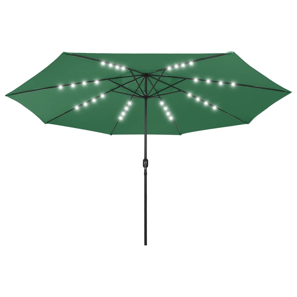 Dieser trendige Gartenschirm mit LED-Beleuchtung ist eine hervorragende Lösung, um Schatten zu spenden und Schutz vor schädlichen UV-Strahlen zu bieten. Dieser Sonnenschirm besteht aus Polyester, das optimalen Schutz vor Sonnenbrand bietet. Die starke Metallstange und die starken Rippen sorgen dafür, dass der Balkonschirm stabil bleibt. Es verfügt über 32 LEDs, die abends ein gemütliches und romantisches Ambiente schaffen. Außerdem lässt sich der Schirm mittels Kurbel leicht öffnen und schließen.