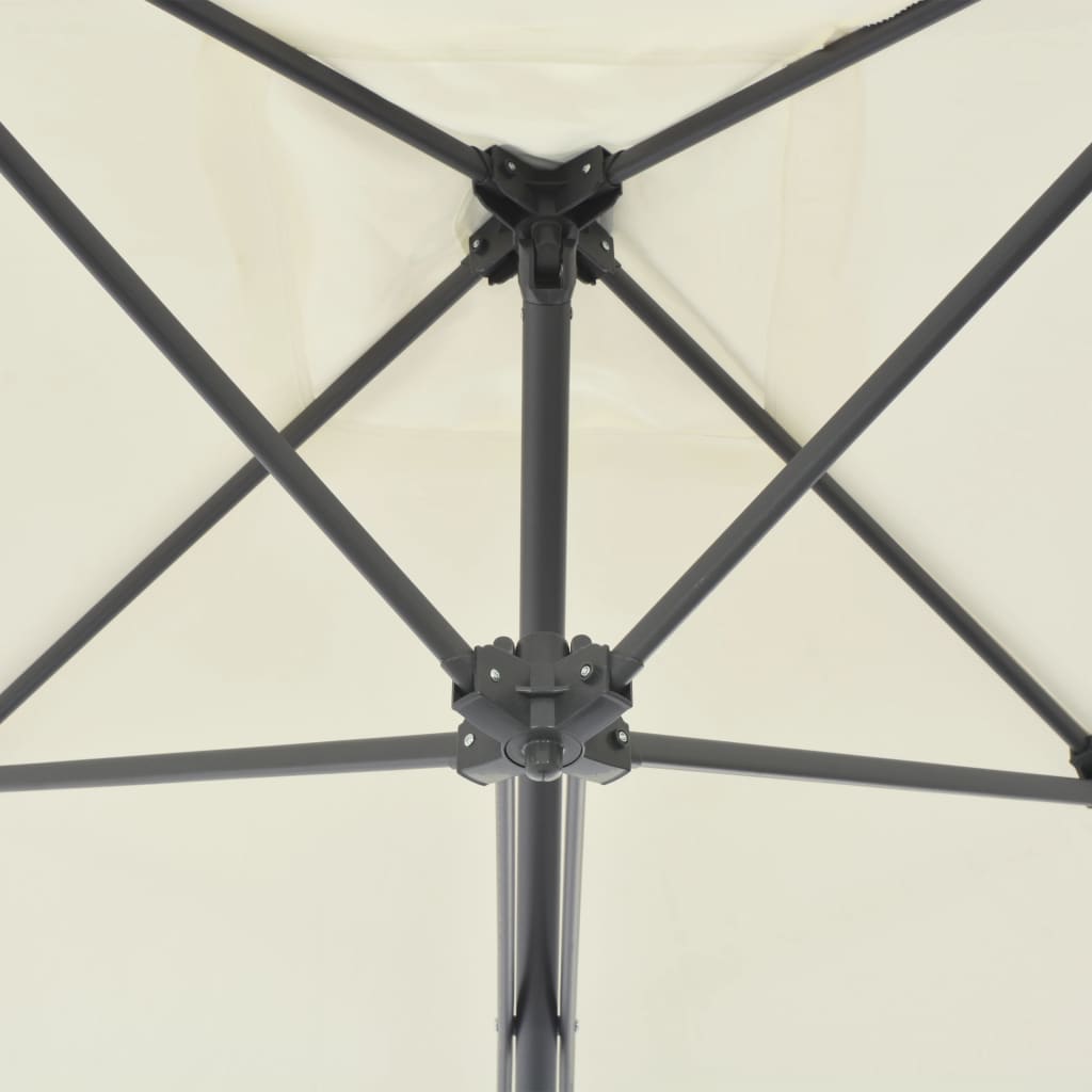 Dieser elegante Sonnenschirm schafft nicht nur ein schattiges Plätzchen in Ihrem Garten, sondern bietet auch Schutz gegen schädliche UV-Sonnenstrahlen. Aus UV-beständigem und farbechtem Polyester gefertigt, bietet dieser pflegeleichte Sonnenschirm optimalen Schutz vor schädlichen Sonnenstrahlen. Er verfügt über einen stabilen Sonnenschirmständer, der für erhöhte Stabilität sorgt. Der robuste Stahlmast und die 4 starken Schirmrippen verleihen dem Gartenschirm Stabilität und Langlebigkeit. Dieser einzigartige Sonnenschirm lässt sich um 360 Grad drehen, was eine einfache Einstellung des Sonnenschirms nach dem Sonnenverlauf ermöglicht. Der Artikel lässt sich leicht zusammenbauen. Bitte beachten: Wir empfehlen, die Schirmbespannung mit einem Imprägnierspray zu behandeln, wenn es starken Regenfällen ausgesetzt ist.