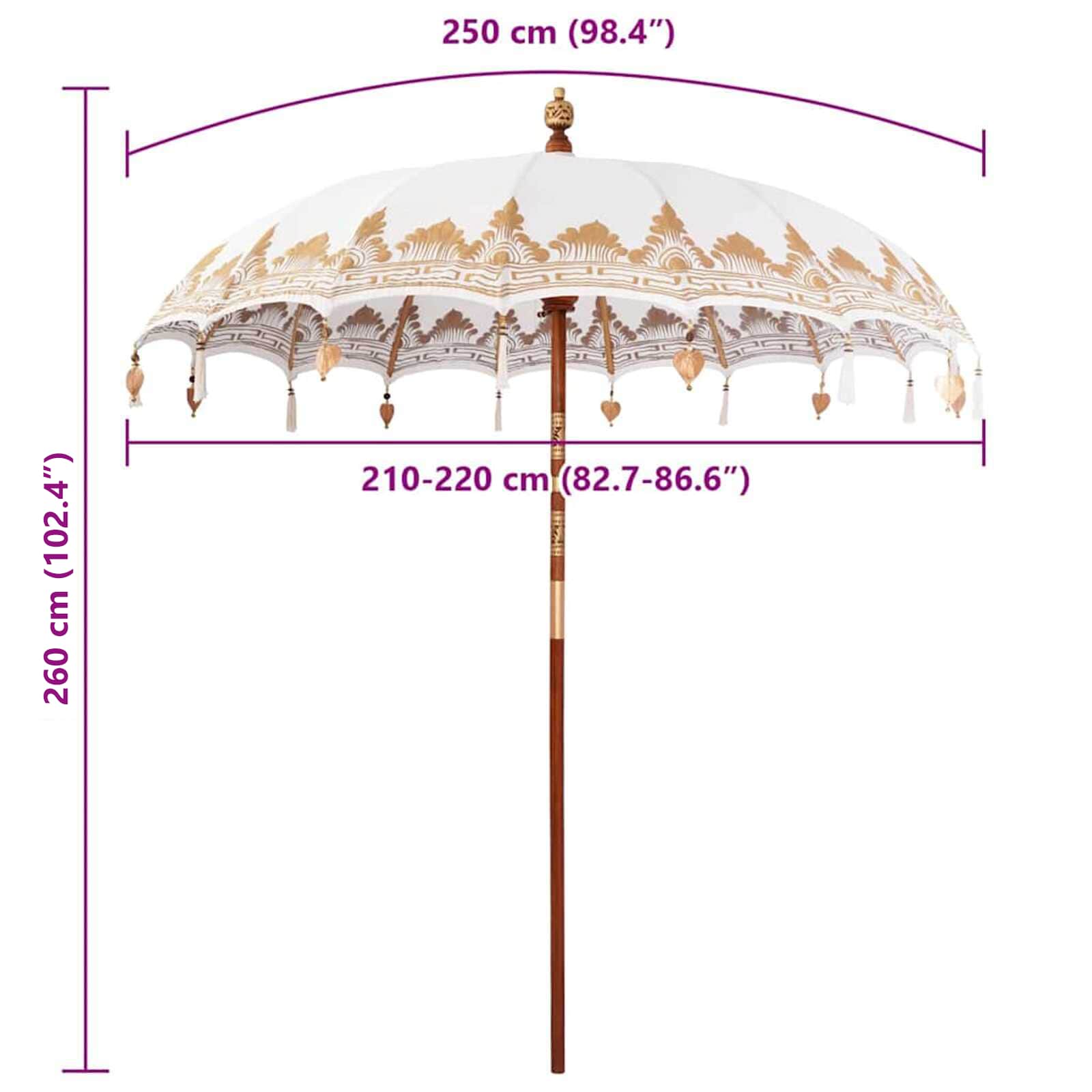 Lass deiner Kreativität freien Lauf mit unserem balinesischen Gartenschirm. Hergestellt aus hochwertiger Baumwolle und Holz, bietet er eine luxuriöse Schattenlösung und sieht dabei super aus. Seine runde Form, die glatte Textur und der lackierte Abschluss sind echte Hingucker für jeden Garten oder Terrasse. Dieser Sonnenschirm bringt chillige balinesische Vibes und ist die perfekte Wahl für alle, die Stil und praktische Eleganz in ihre Sommer-Setups bringen wollen. Haltbare Materialien: Hergestellt aus hochwertiger Baumwolle und stabilem Holz, überzeugt dieser Schirm durch Haltbarkeit und Aussehen. Die balinesischen Details machen jedes Stück besonders und sorgen dafür, dass er in jedem Außenbereich auffällt. Zusammenklappbare Funktion: Lässt sich mühelos verstauen, wenn er nicht gebraucht wird, und ist super praktisch für Outdoor-Spaß, ohne viel Platz zu beanspruchen. Balinesisches Design: Mit seinem ruhigen, schönen balinesischen Stil verwendet dieser Schirm natürliche Materialien und handgemachte Elemente. Perfekt für tropische Themen und sorgt für eine entspannte, erdige Stimmung in deinem Bereich. Funktionale Ergonomie: Du kannst ihn einfach manuell einstellen, um den benötigten Schatten zu erhalten. Keine komplizierten Teile – ein solider und zuverlässiger Begleiter für sonnige Tage. Pflegehinweise: Um ihn schick zu halten, sei sicher, ihn nicht in direkter Sonne stehen zu lassen, wenn du ihn nicht nutzt, und einfach Schmutz abzuweisen, wenn er trocken ist. Diese einfachen Schritte halten ihn stylisch und funktional, bereit für Saison nach Saison.