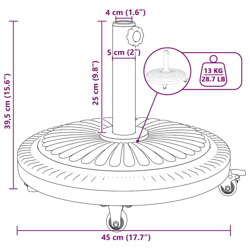Ein Sonnenschirmständer ist ein unverzichtbares Teil für jeden Garten oder Balkon, der deinem Sonnenschirm zuverlässigen Halt gibt. Mit seiner stylischen runden Form und dem Art Deco-Muster, das durch kräftige geometrische Designs besticht, verleiht er jedem Außenbereich eine elegante Note. Sein modernes Aussehen strahlt einfach coolen Chic aus und bleibt dabei super funktional – perfekt für alle, die einen minimalistischen Stil mit klaren Linien lieben. Materialien: Der Sonnenschirmständer besteht hauptsächlich aus Polyethylen und Eisen. Polyethylen ist bekannt für Langlebigkeit und Widerstandskraft gegen raue Witterungsbedingungen, und sieht dabei auch noch schick aus. Die Eisenkonstruktion sorgt für stabilen Halt, selbst bei windigem Wetter. Diese Materialien garantieren sowohl Zuverlässigkeit als auch ansprechendes Design, egal wo du ihn nutzt. Komponenten: Dieser Sonnenschirmständer hat eine einfache, breitenverstellbare Funktion, die es ihm erlaubt, verschiedene Schirmgrößen super zu unterstützen. Dank des gefüllten Betonkranzes gibt's zusätzliche Stabilität. Außerdem hat er vier Rollen für mehr Beweglichkeit, wobei zwei davon mit einem sicherem Verriegelungssystem versehen sind, was für Stabilität und sichere Positionierung sorgt. Eigenschaften / Funktion / Design: Ein herausragendes Merkmal dieses Sonnenschirmständers ist seine Wetterfestigkeit. Regen und intensives Sonnenlicht machen ihm nichts aus. Das moderne Design fügt sich gleichmäßig in jede zeitgemäße Außengestaltung ein und das kunstvolle Design steigert die Eleganz der Orte, wo er steht. Empfohlene Anwendungen: Ideal für draußen, ist dieser Ständer perfekt für Terrassen, Balkone oder Gärten geeignet. Seine Vielseitigkeit macht ihn sowohl für private als auch gewerbliche Nutzung geeignet und unterstützt Chill-Zonen überall in der Sonne. Kombination aus Funktionalität und Stil sorgt dafür, dass er zu verschiedenen Außenanlagen passt. Pflege & Wartung: Um den ursprünglichen Zustand des Sonnenschirmständers zu erhalten, wird empfohlen, ihn regelmäßig mit einem weichen, trockenen Tuch abzuwischen, um Staub zu vermeiden. Vermeide scharfe Chemikalien, um die Oberfläche zu schonen. Bei längerer Nichtnutzung kannst du den Ständer abdecken oder drinnen lagern, um die Lebensdauer zu verlängern und dafür zu sorgen, dass er ein zentrales Element deines Außenbereichs bleibt.