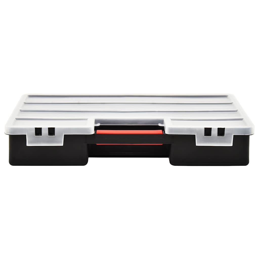 Dieser Sortimentskasten mit verstellbaren Trennwänden ist ein großartiger Helfer in deiner Garage, Werkstatt und so weiter! Dieser praktische Werkzeugorganisator ist ein hervorragender Vorschlag für Menschen, die beim Heimwerken und Basteln Wert auf Ordnung und Sauberkeit legen, aber auch für Profis am Arbeitsplatz. Dank des transparenten Deckels kannst du Schrauben, Muttern, Nägel und andere Kleinteile leicht erkennen und finden. Mit 21 verstellbaren Trennwänden kann der Sortimentskoffer in bis zu 26 Fächer unterteilt werden, damit alles seinen Platz findet. Der benutzerfreundliche Griff ermöglicht es dir, den Inhalt zu transportieren.