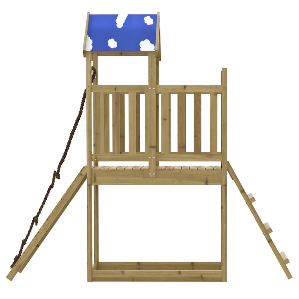 - Spielturm-Material: Unter Kesseldruck imprägniertes Kiefernholz