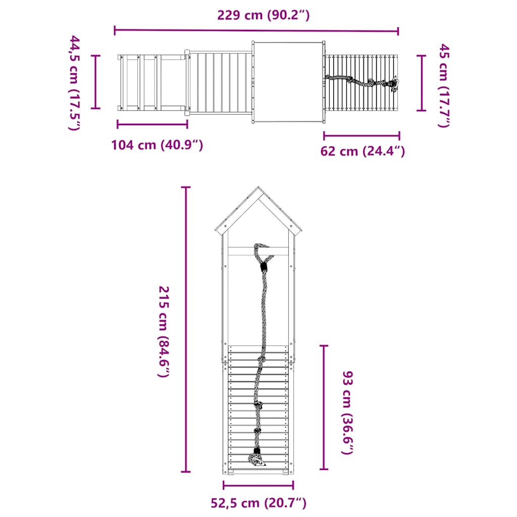 Möchtest du deinen Kindern ihren eigenen Spielplatz schenken? Dieses Spielgerät aus Holz ermöglicht fantasievolle Abenteuer im eigenen Garten! Langlebiges Material: Der Rahmen besteht aus Kiefernholz, das unter Kesseldruck imprägniert wurde. Massives Kiefernholz ist für seine Stärke und Haltbarkeit bekannt. Seine gerade Maserung und die charakteristischen Aststellen tragen zu seinem rustikalen Charme bei. Es wurde mit einer Konservierungslösung imprägniert und mit Autoklaven behandelt, um eine höhere Verrottungs- und Witterungsbeständigkeit zu besitzen.Stabiler Holzrahmen: Der Holzrahmen verleiht dem Spielhaus Robustheit und Stabilität.Mehrere Spielmöglichkeiten: Der Spielturm verfügt über eine 90 cm hohe Plattform, eine Kletterrampe, eine Leiter sowie einen Sandkasten. So können deine Kleinen auch ihre Freunde zum Mitspielen einladen.Durchdachtes Design: Die umlaufenden Holzgeländer gewährleisten die Sicherheit der Kinder beim Spielen. Zudem spendet das Wolkendach Schatten an heißen Sommertagen.Unendlicher Spielspaß: Dieser unterhaltsame Kletterturm aus Holz bietet Kindern und ihren Freunden den perfekten Platz, um sich auszutoben, mehr Spaß miteinander zu haben und Erinnerungen zu schaffen! Achtung:Nur für den HausgebrauchFür den AußenbereichNicht geeignet für Kinder unter 3 JahrenEmpfohlenes Benutzeralter: 3-8 JahreMaximales Gewicht pro Benutzer: 45 kg