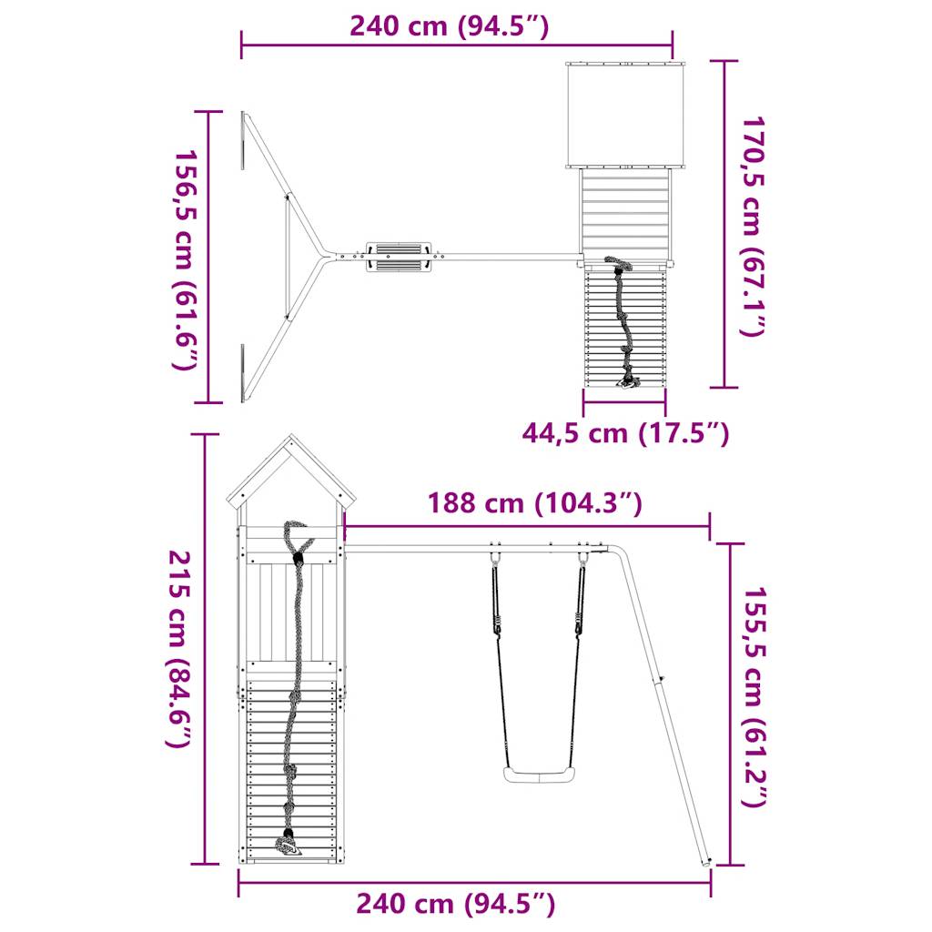 - Spielturm-Material: Unter Kesseldruck imprägniertes Kiefernholz