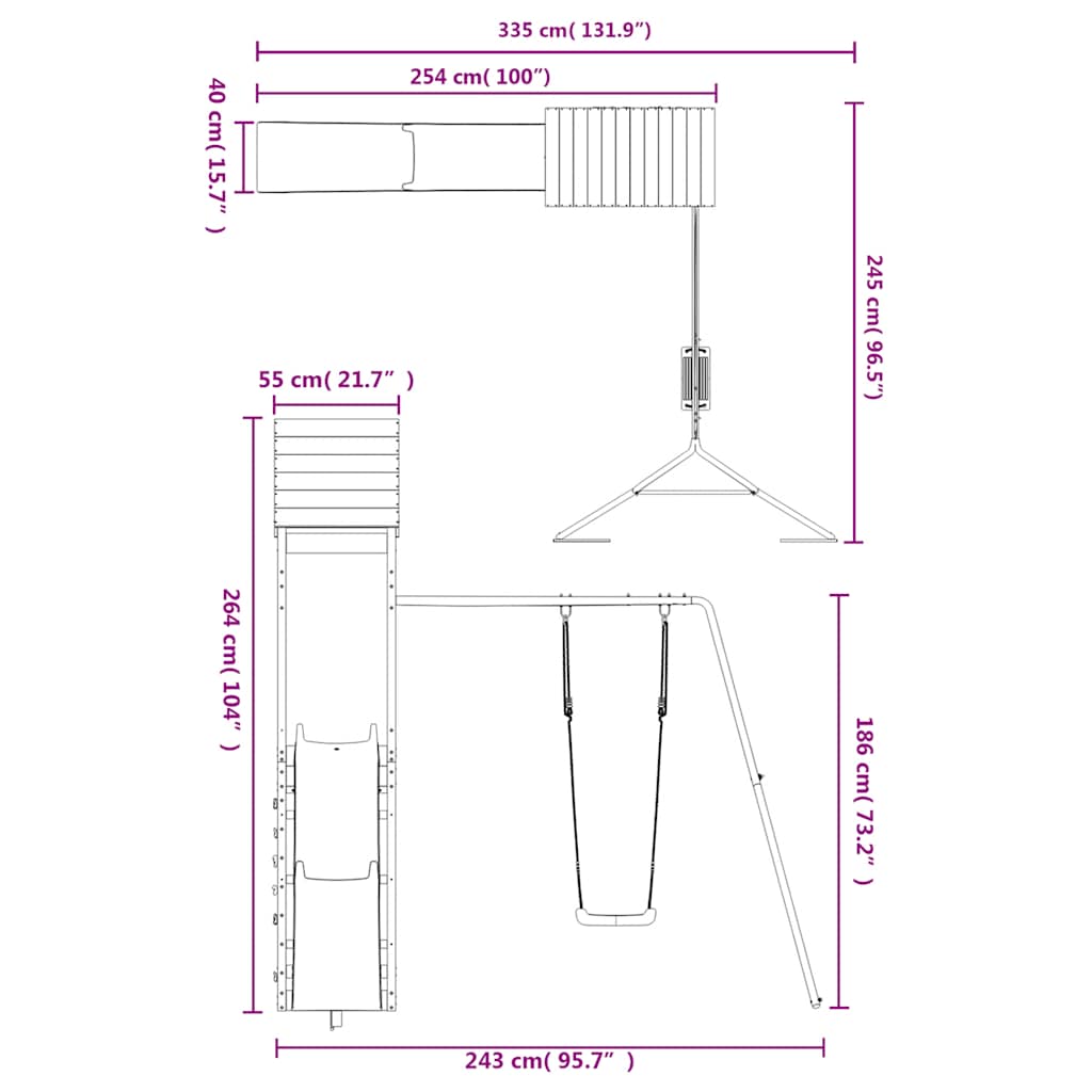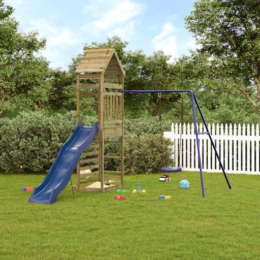 Möchtest du deinen Kindern ihren eigenen Spielplatz schenken? Dieser Spielplatz aus Holz ermöglicht fantasievolle Abenteuer im eigenen Garten! Kesseldruckimprägniertes Holz: Dieses Garten-Klettergerüst ist aus kesseldruckimprägniertem Kiefernholz gefertigt. Kiefer-Massivholz ist ein schönes Naturmaterial. Kiefernholz weist eine gerade Maserung auf und die Aststellen verleihen dem Holz seine charakteristische, rustikale Optik. Die Kesseldruckimprägnierung ist ein Konservierungsverfahren, das mit Hilfe von Autoklaven durchgeführt wird. Sie erhöht die Fäulnis- und Witterungsbeständigkeit des Holzes.Robuster und stabiler Rahmen: Der Spielgerät-Rahmen aus Holz sorgt für Robustheit und Sicherheit. Außerdem sorgt das "A"-förmige Gestell der Kinderschaukel für Stabilität.Mehrere Spielmöglichkeiten: Der Spielturm verfügt über eine 90 cm hohe Plattform, eine Kletterwand, eine Wellenrutsche, eine Schaukel sowie einen Sandkasten. So können deine Kleinen auch ihre Freunde zum Mitspielen einladen.Durchdachtes Design: Die umlaufenden Holzgeländer gewährleisten die Sicherheit der Kinder beim Spielen. Zudem spendet das Holzdach an heißen Sommertagen Schatten.Unendlicher Spielspaß: Dieses lustige Spielgerät ist die perfekte Möglichkeit für deine Kinder und ihre Freunde, sich zu beschäftigen, mehr Spaß miteinander zu haben und Erinnerungen zu schaffen! Achtung:Nur für den HausgebrauchFür den AußenbereichNicht geeignet für Kinder unter 3 JahrenEmpfohlenes Benutzeralter: 3-8 Jahre Gut zu wissen:Um die Montage so einfach wie möglich zu machen, wird jedes Produkt mit einer Anleitung geliefert.