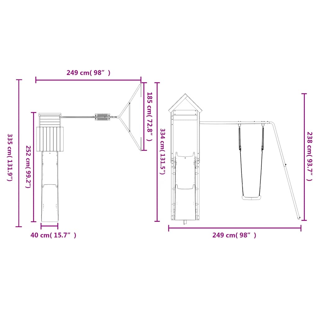 Möchtest du deinen Kindern ihren eigenen Spielplatz schenken? Dieser Spielplatz aus Holz ermöglicht fantasievolle Abenteuer im eigenen Garten! Massives Douglasienholz: Dieses Garten-Klettergerüst ist aus Douglasien-Massivholz gefertigt. Massives Douglasienholz ist ein sehr langlebiges Material, das sich gut für den Außenbereich eignet. Douglasienholz ist selbst bei Witterungseinflüssen sehr robust und erfordert wenig Pflege.Robuster und stabiler Rahmen: Der Spielgerät-Rahmen aus Holz sorgt für Robustheit und Sicherheit. Außerdem sorgt das "A"-förmige Gestell der Kinderschaukel für Stabilität.Mehrere Spielmöglichkeiten: Das Spielgerät verfügt über eine 118 cm hohe Plattform, eine Wellenrutsche, eine Schaukel sowie einen Sandkasten. So können die Kleinen auch ihre Freunde zum Mitspielen einladen. Durchdachtes Design: Die umlaufenden Holzgeländer gewährleisten die Sicherheit der Kinder beim Spielen. Zudem spendet das Holzdach an heißen Sommertagen Schatten.Unendlicher Spielspaß: Dieses lustige Spielgerät aus Holz ist die perfekte Möglichkeit für deine Kinder und ihre Freunde, sich zu beschäftigen, mehr Spaß miteinander zu haben und Erinnerungen zu schaffen! Achtung:Nur für den HausgebrauchFür den AußenbereichNicht geeignet für Kinder unter 3 JahrenEmpfohlenes Benutzeralter: 3-8 Jahre