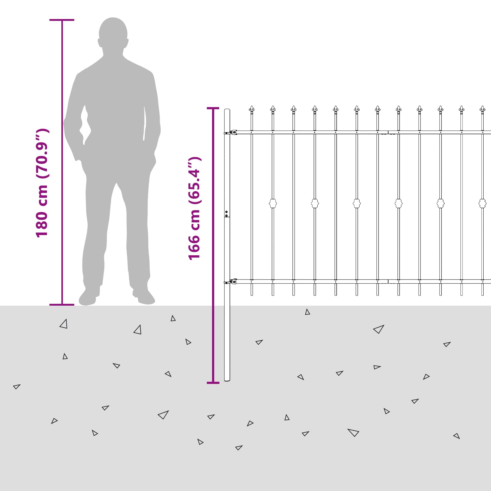Spießzaun Schwarz 200 x 130 cm Pulverbeschichteter Stahl