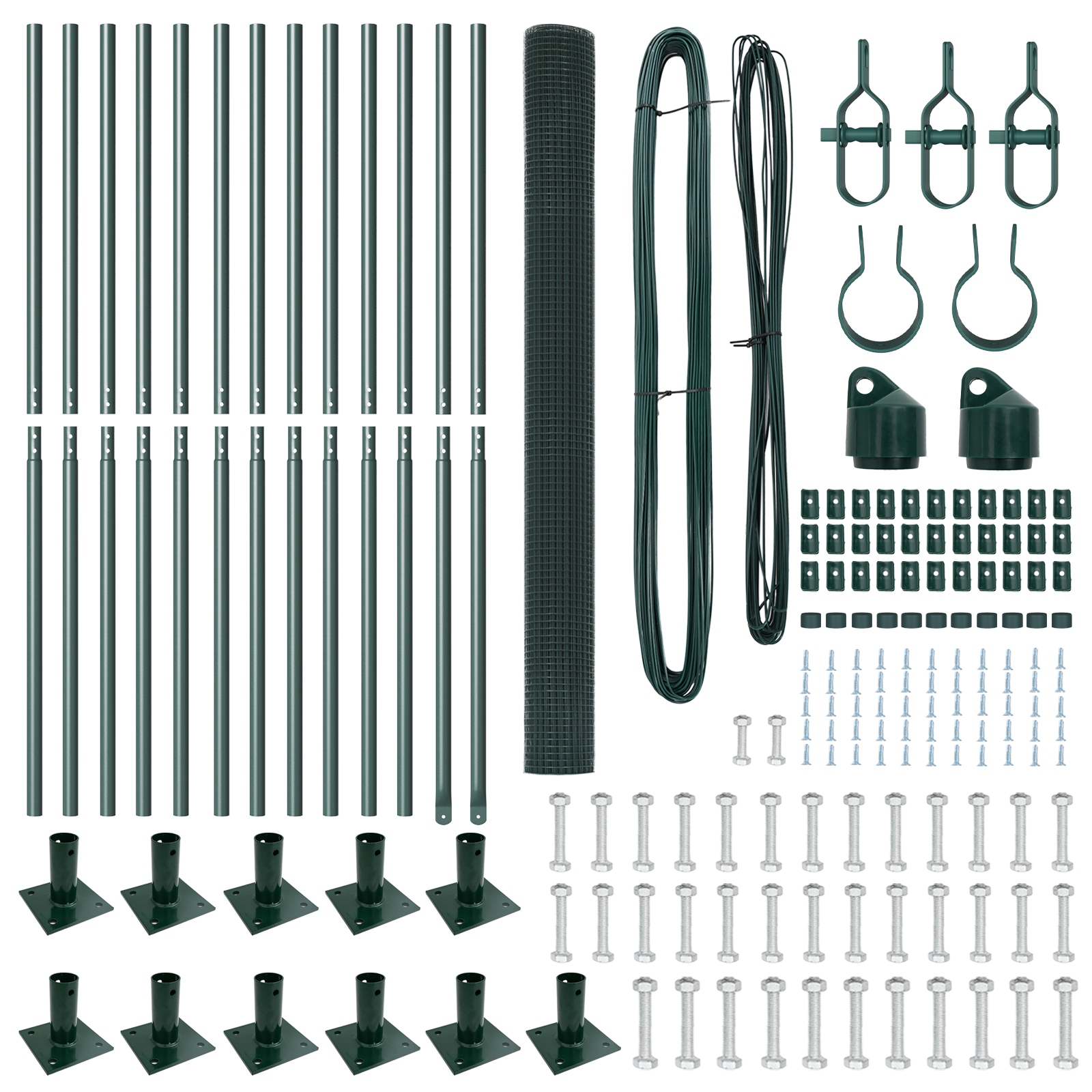 Dieses Set von grünen pulverbeschichteten Stahlzaunpfosten ist genau das, was du für deinen Zaun brauchst. Es wurde stabil und langlebig mit hochwertigen Materialien entwickelt. Sein modernes Design in einem attraktiven Grünton verbindet Funktionalität mit Stil und ist perfekt für Außenbereiche wie Gärten. Es macht deinen Platz schöner und bietet gleichzeitig tolle Sicherheit. Langlebige Konstruktion: Aus pulverbeschichtetem Stahl gefertigt, ist dieses Set dafür gemacht, den Elementen zu trotzen und Korrosion zu widerstehen, für dauerhaften Einsatz. Modernes Design: Das schicke grüne Finish gibt einen zeitgemäßen Look und macht es zu einer echten Augenweide für deinen Außenbereich. Einfache Installation: Braucht nur einen Bohrer und einfaches Werkzeug, was schnellen und einfachen Montageprozess ermöglicht. Komplettpaket: Das Set hat Zaunpaneele, Pfosten, eine Netzrolle, Drähte und Halterungen dabei, damit alles für dein Zaunprojekt vorhanden ist. Nur für draußen: Speziell für den Außeneinsatz konzipiert, was zuverlässige Leistung in Außenumgebungen garantiert.